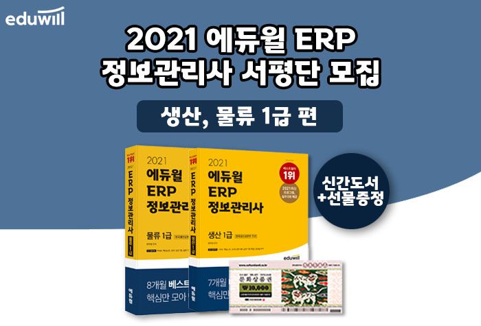 1. 참여자 전원 : 2021 에듀윌 ERP 1급 생산/물류 (택1, 20명선정)