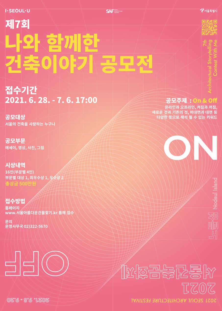 2. 공모기간 : 2021. 5. 20.(목) ~ 7. 6.(화) 17:00※ 대상은 서울시에 위치한 건축물, 공간, 장소로 한함