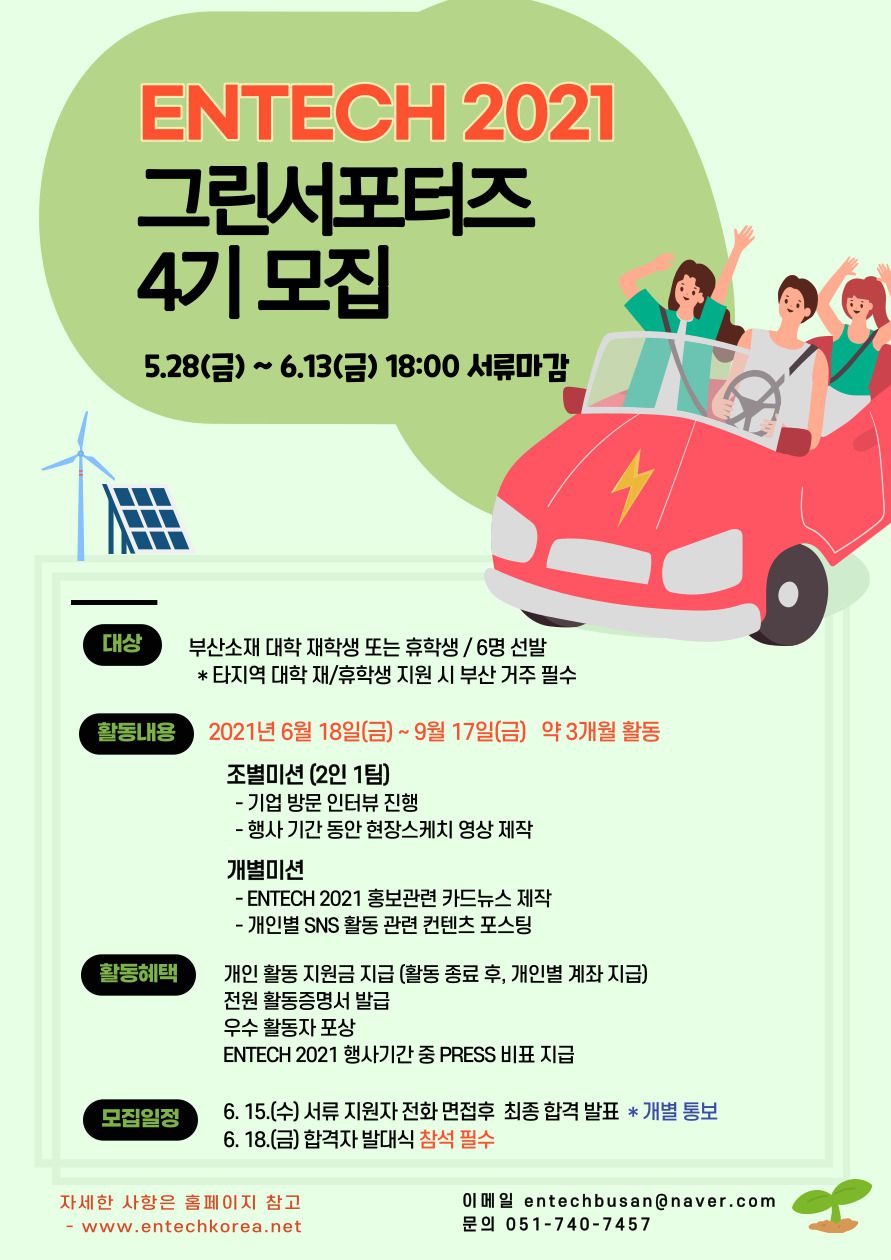 이야기를 전해줄 ENTECH 2021 그린서포터즈 4기를 모집합니다.