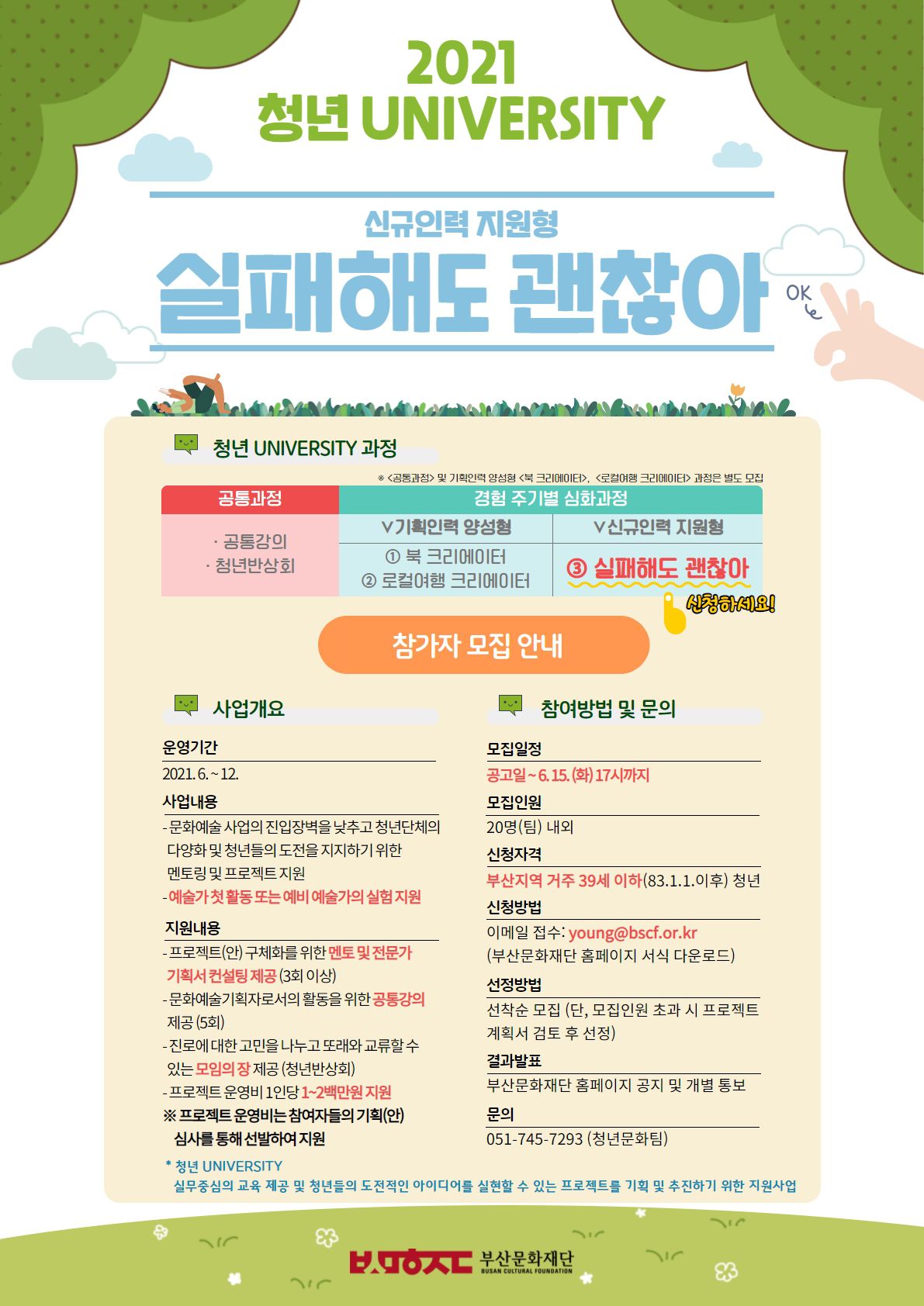▹모 집 명: 2021 청년 UNIVERSITY 신규인력 지원형 <실패해도 괜찮아> 참여자 모집