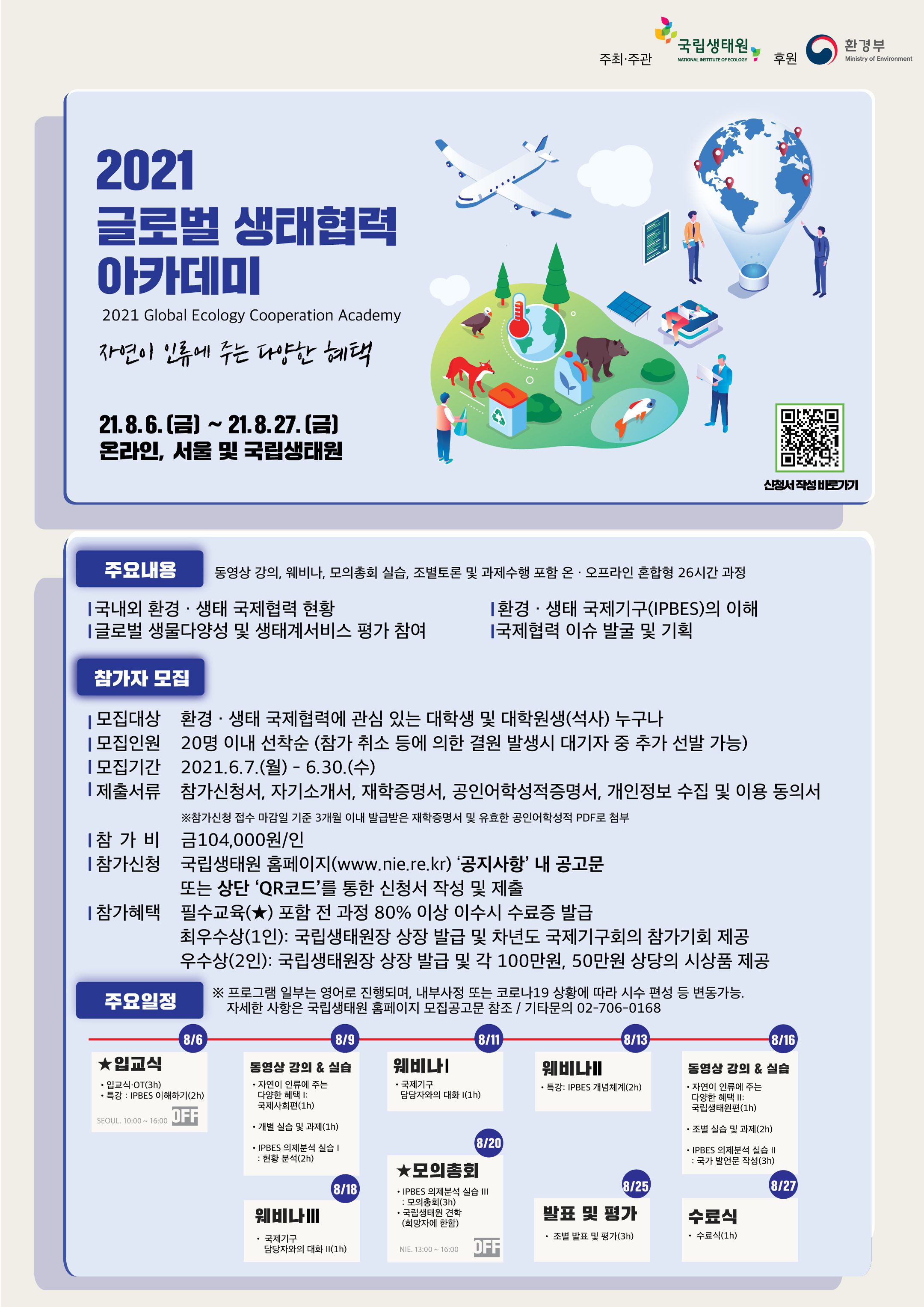 자세한 사항은 국립생태원 홈페이지 모집공고문 참조/ 문의 02-706-0168