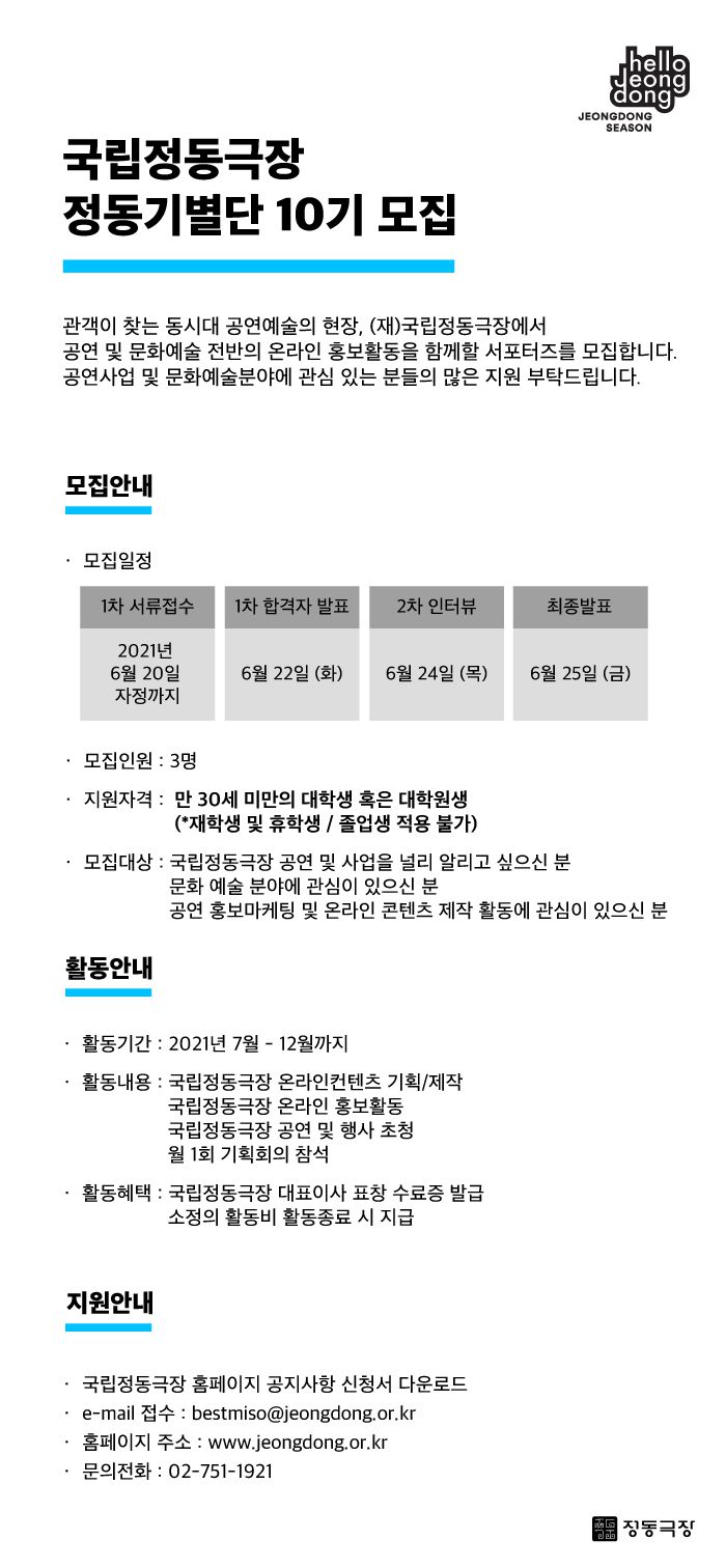 관객이 찾는 동시대 공연예술의 현장, (재)국립정동극장에서 공연 및 문화예술 전반의 온라인 홍보활동을 함께할 서포터즈를 모집합니다.