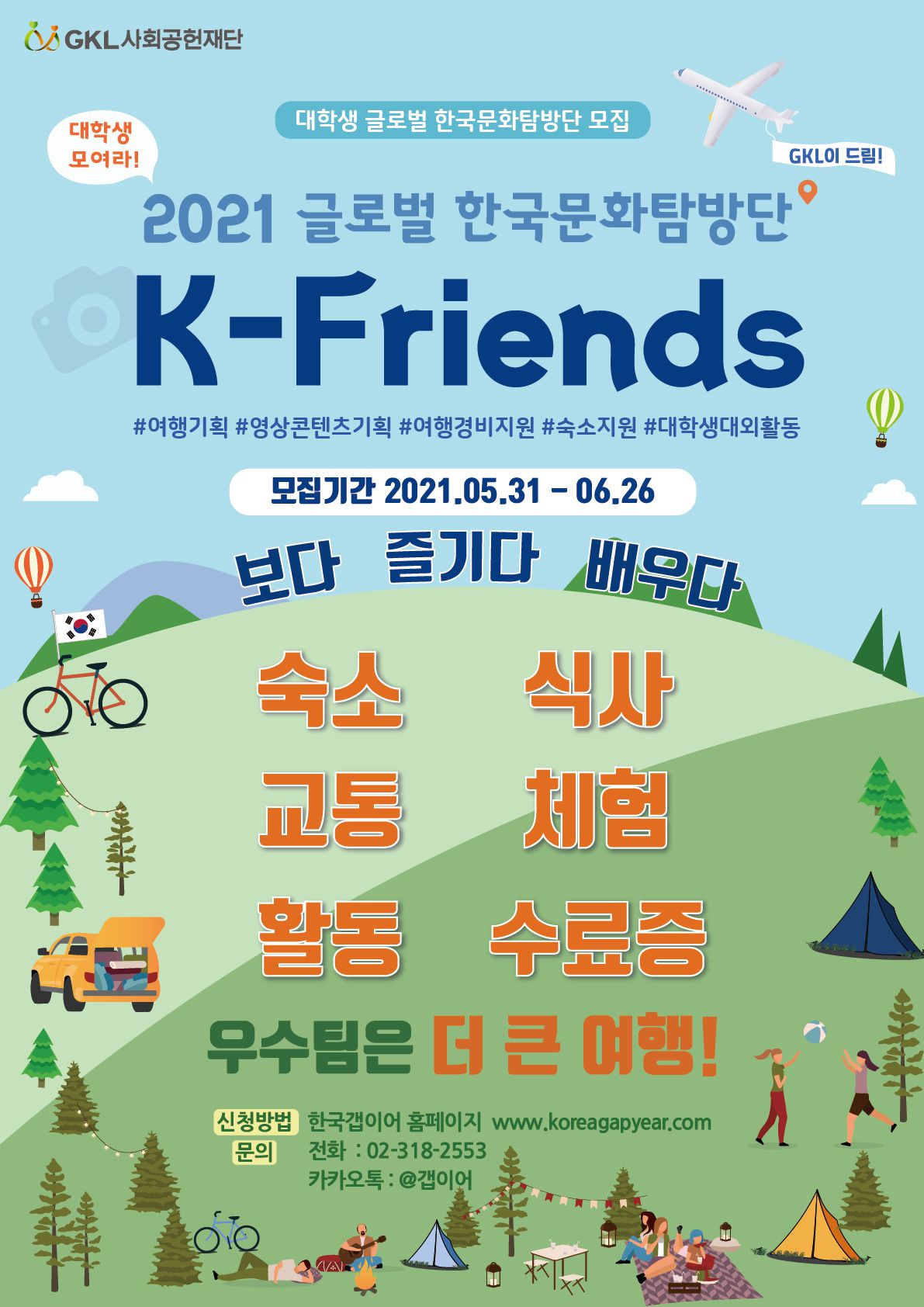 - 숙소, 교통, 식사, 체험비까지 자유로운 여행을 위한 활동비 지원!