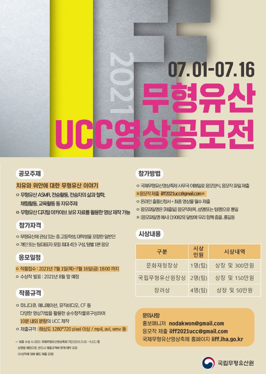 2021 무형유산 UCC 영상공모전 공고