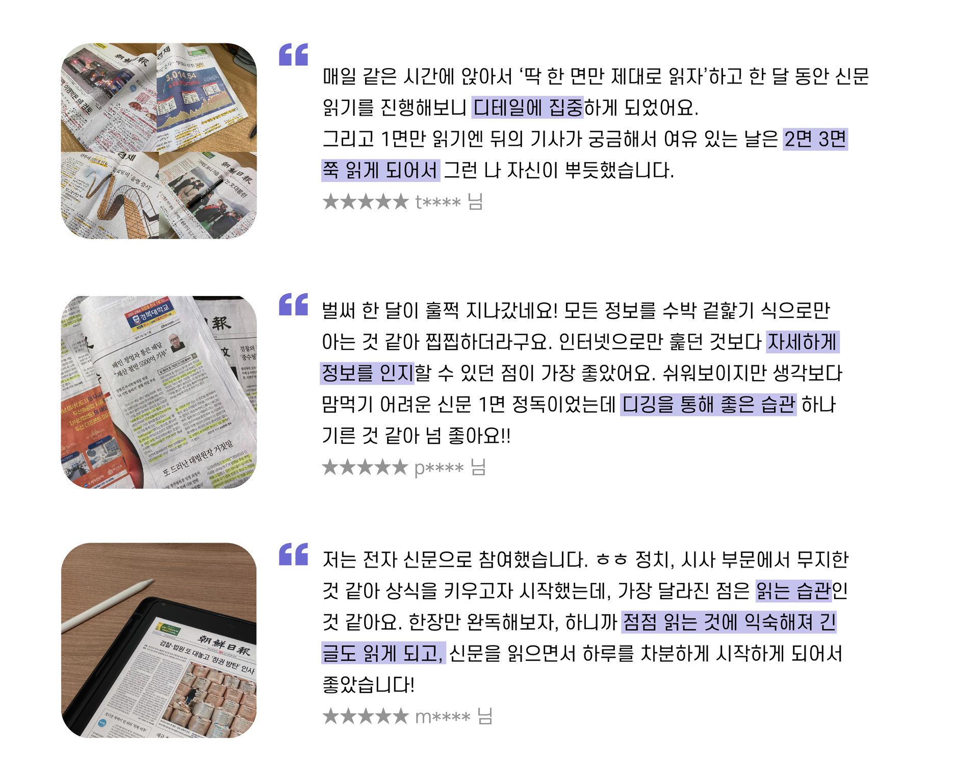 - 한 달 동안 매일 신문 1면을 읽고 인증샷 공유
