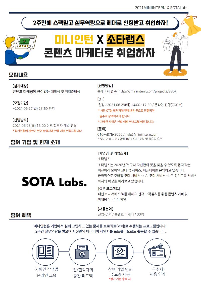 [미니인턴X소타랩스] 2주 동안 콘텐츠 마케팅 실무 경험하고, 2주 후 콘텐츠 마케터로 취업하자! (~7/6)