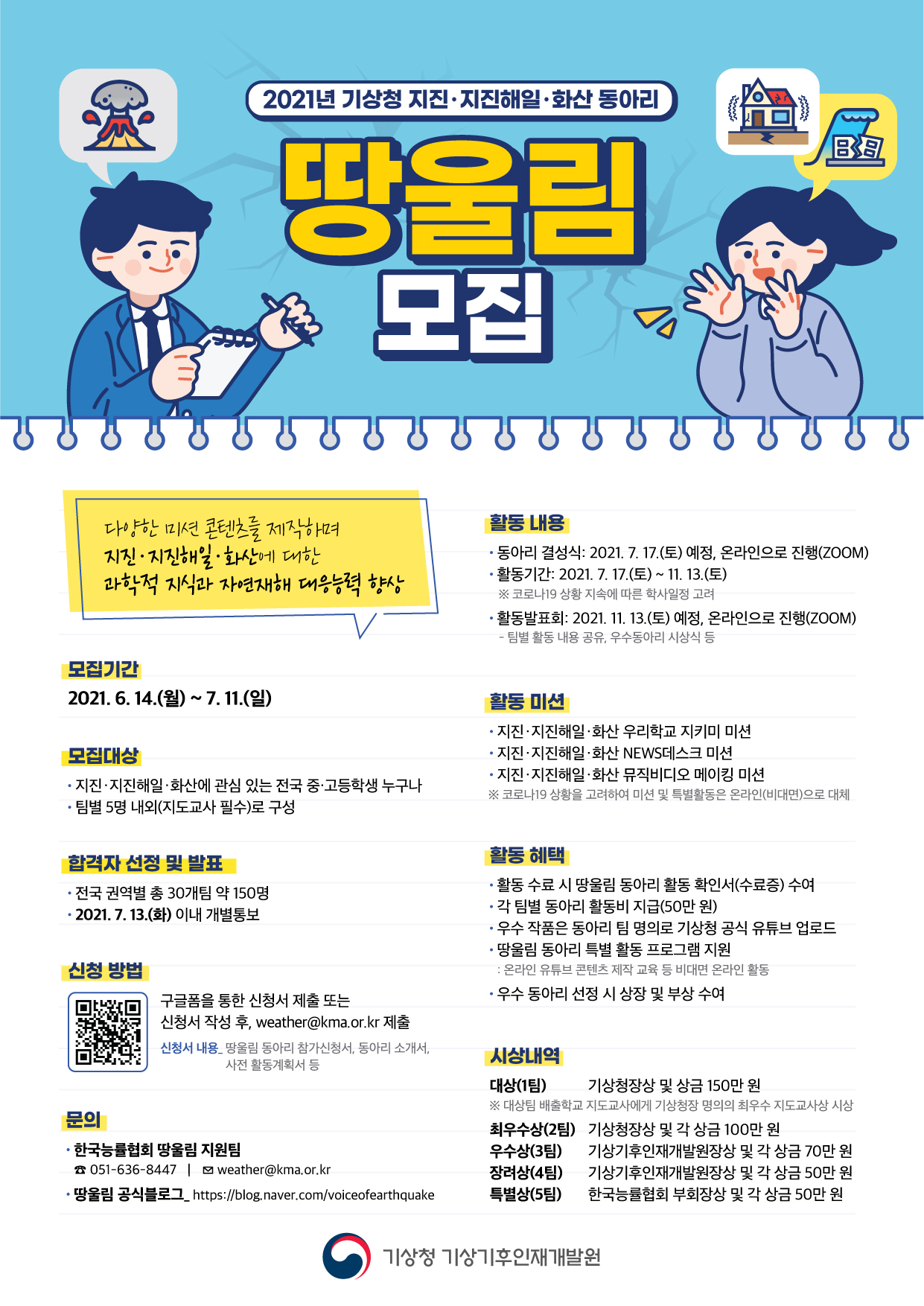 ◈ 기상청 2021년 지진·지진해일·화산 동아리 땅울림 모집 안내