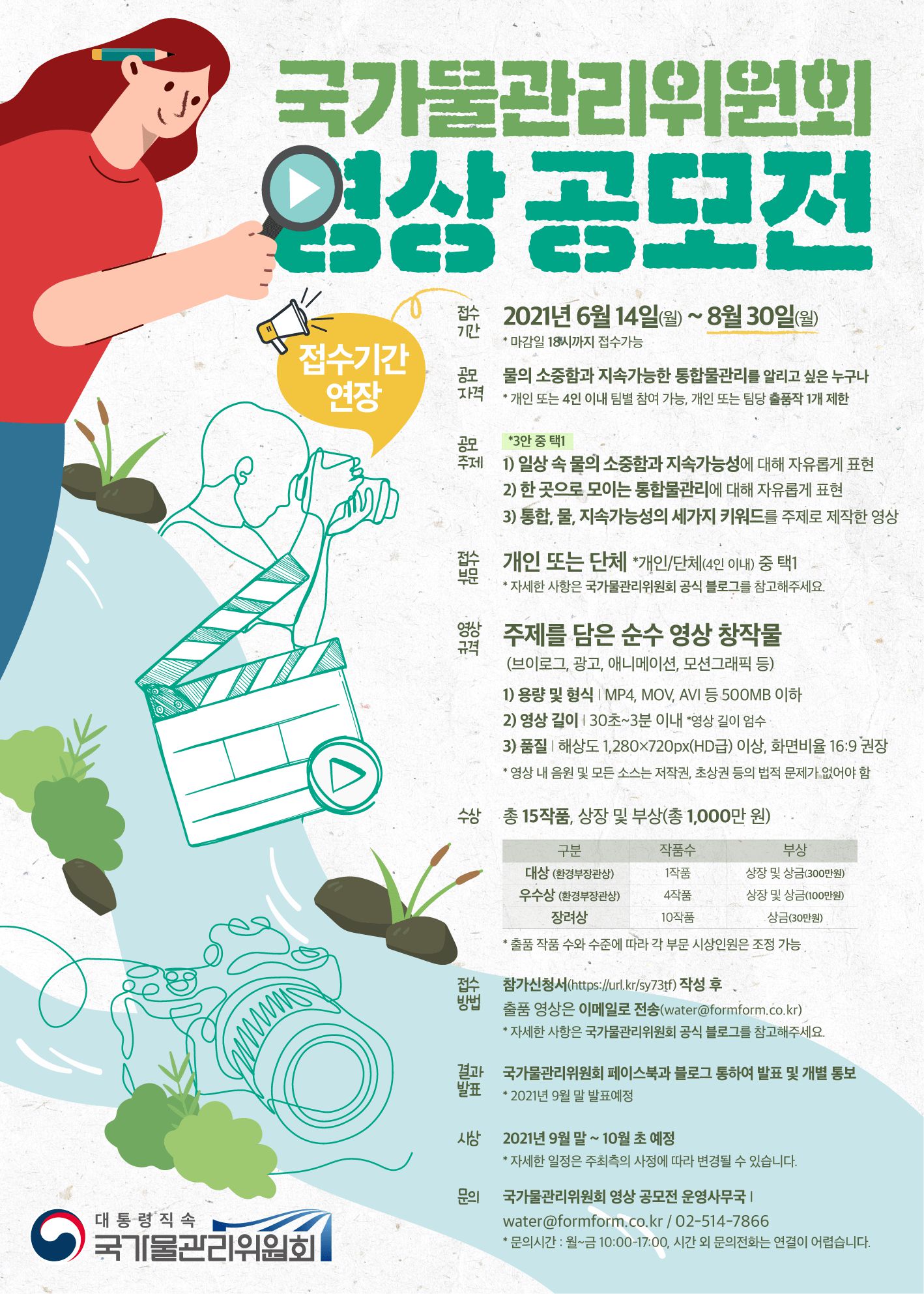 국가물관리위원회 영상 공모전 운영사무국 폼폼커뮤니케이션 (메일 : water@formform.co.kr / 전화번호 : 02-514-7866)
