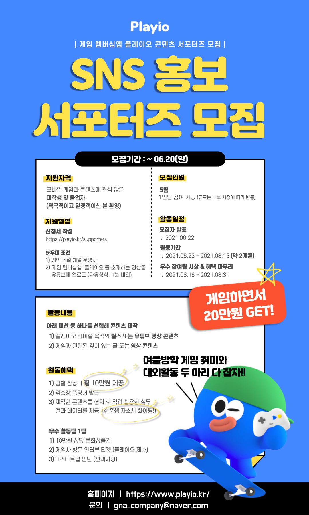 알찬 대외활동 플레이오 SNS 서포터즈에 지원해주세요!