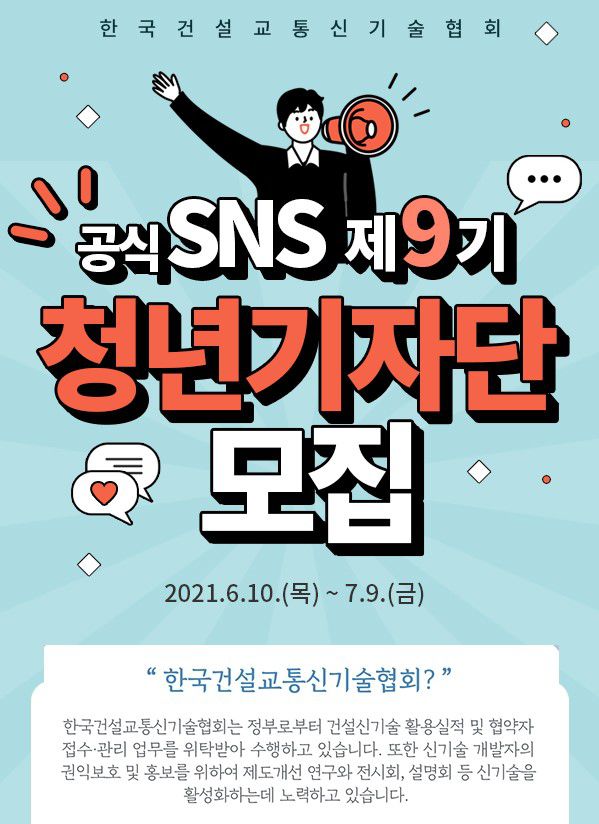 제9기 한국건설교통신기술협회 청년기자단 모집 공고(6. 10(목) ~ 7. 9(금))
