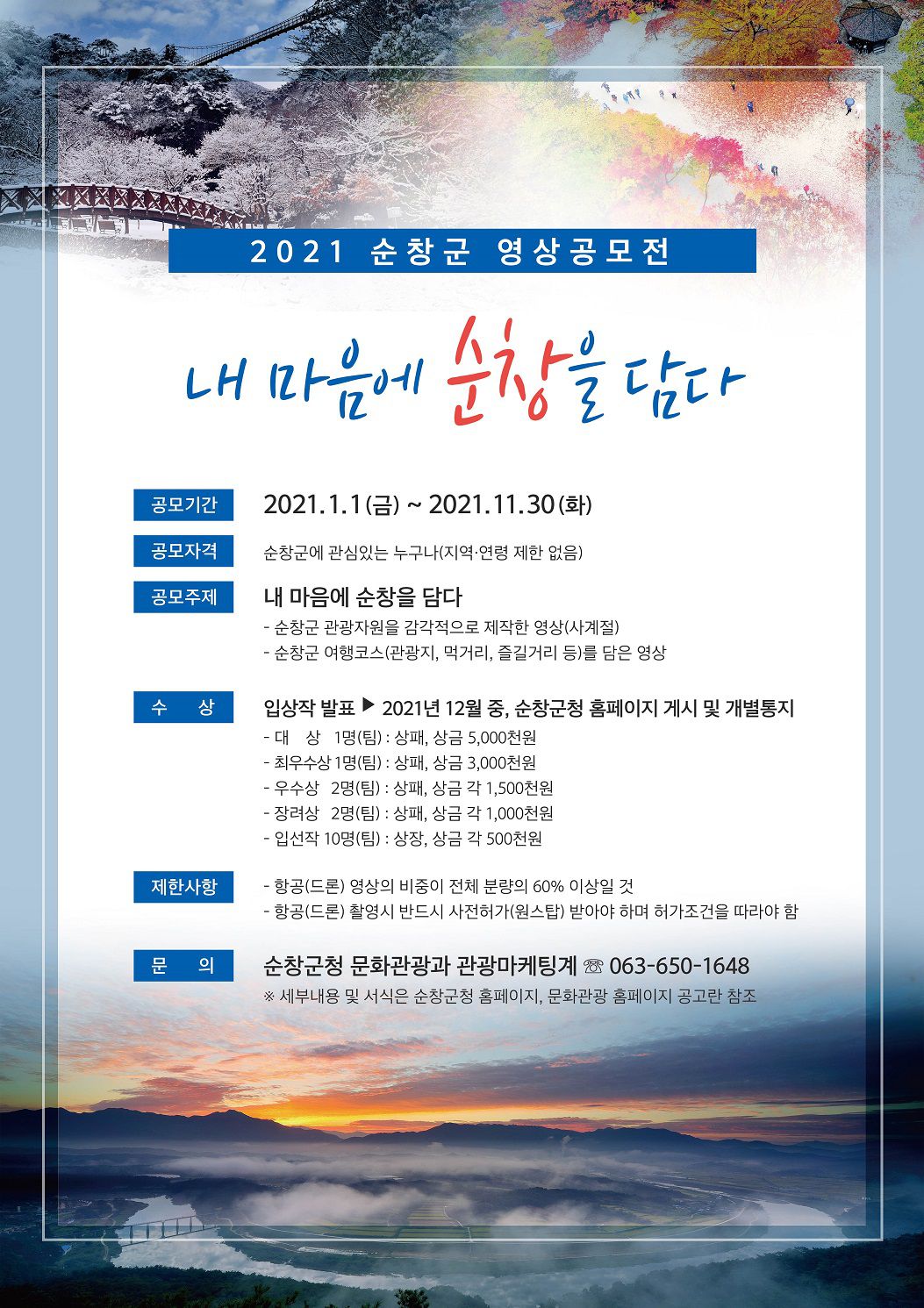 1. 공 모 명 : ‘내 마음에 순창을 담다’ 2021년 순창군 영상공모전