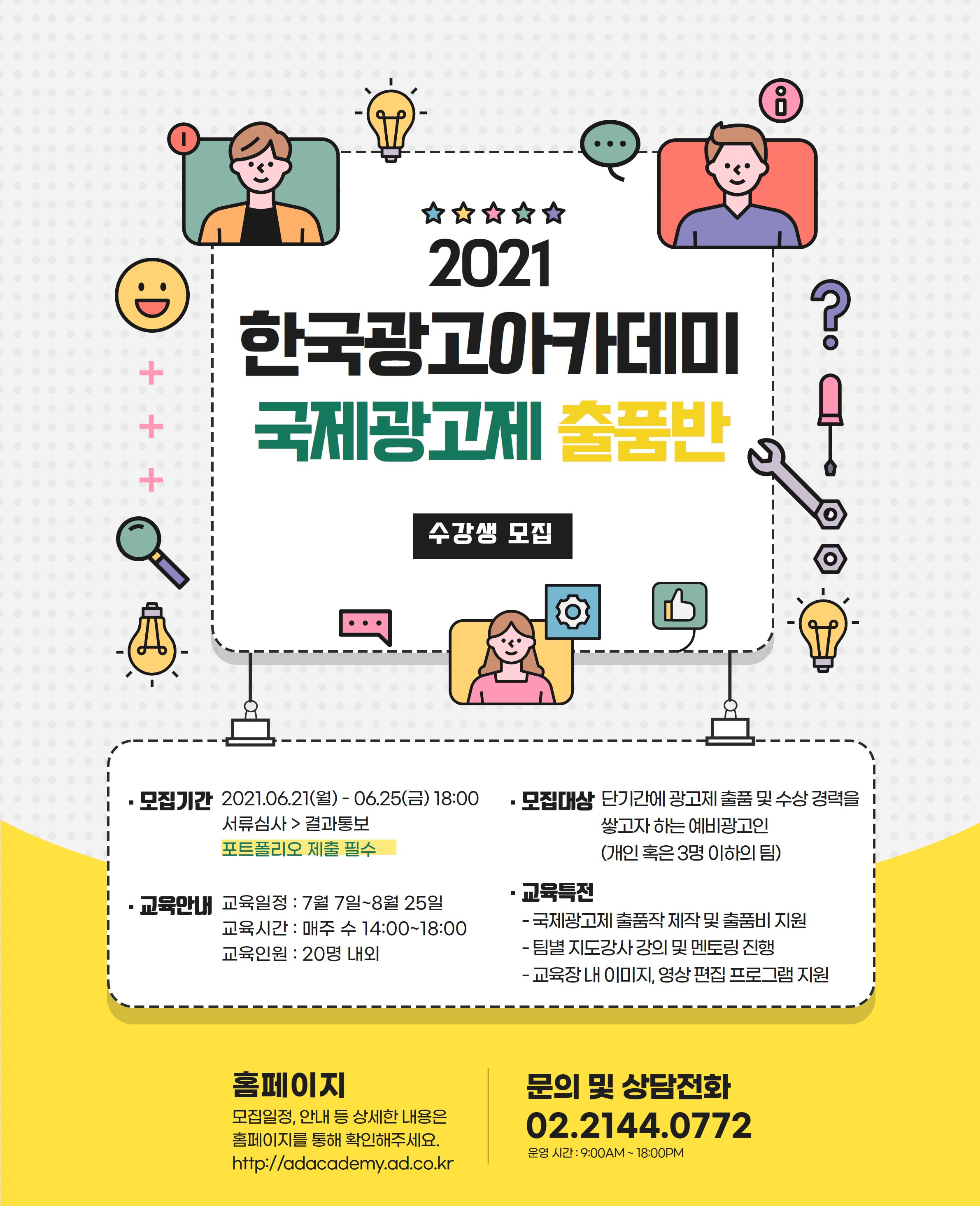 - 국제광고제 출품반 모집: 2021.06.21(월) - 06.25(금) 18:00
