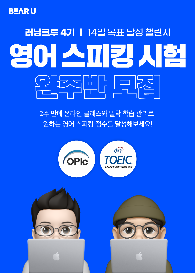 [러닝크루4기] 14일 목표 달성 챌린지! 영어 스피킹 시험 (오픽/토스) 완주반 선착순 모집