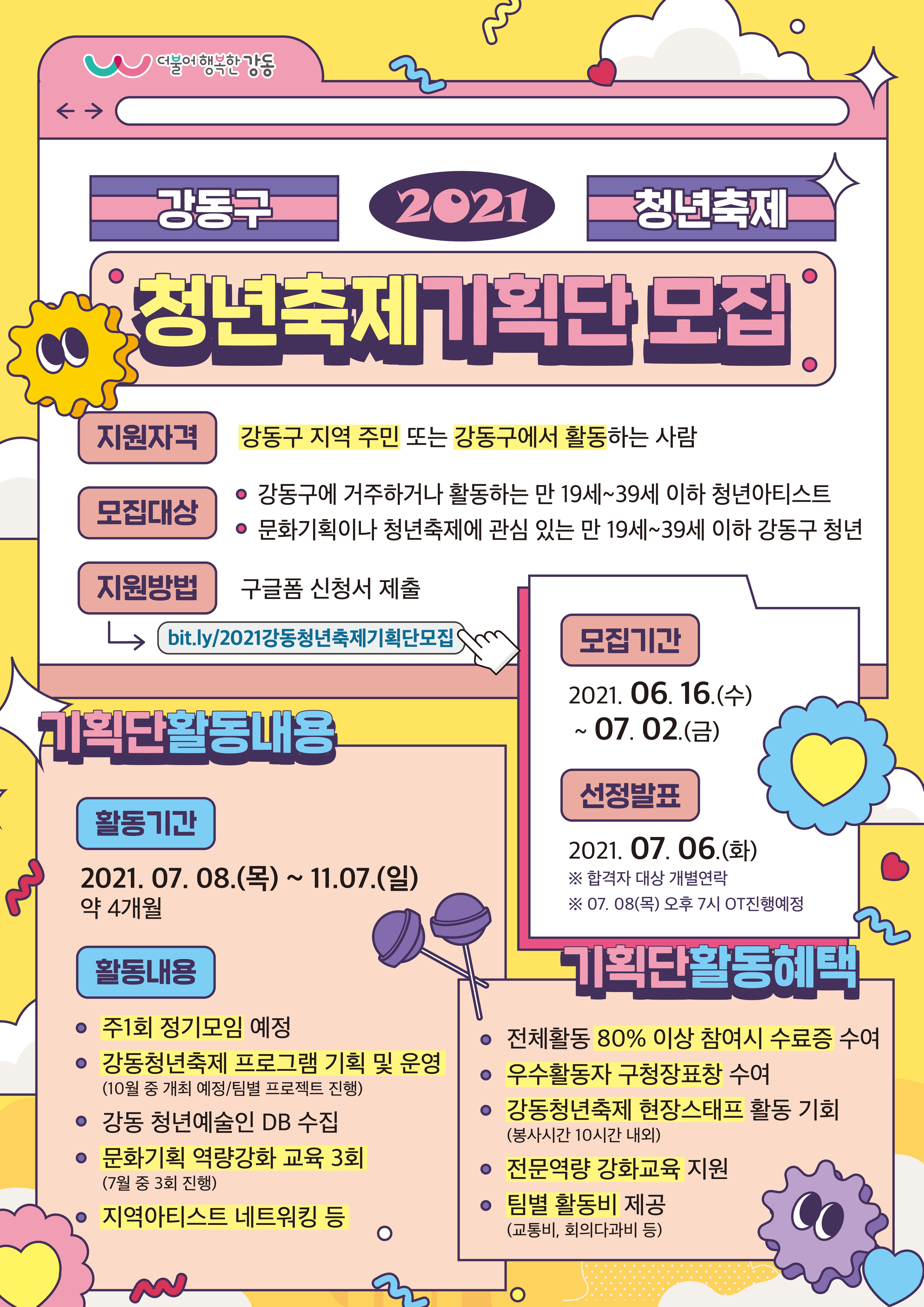▶︎ 참여방법 : http://bit.ly/2021강동청년축제기획단모집