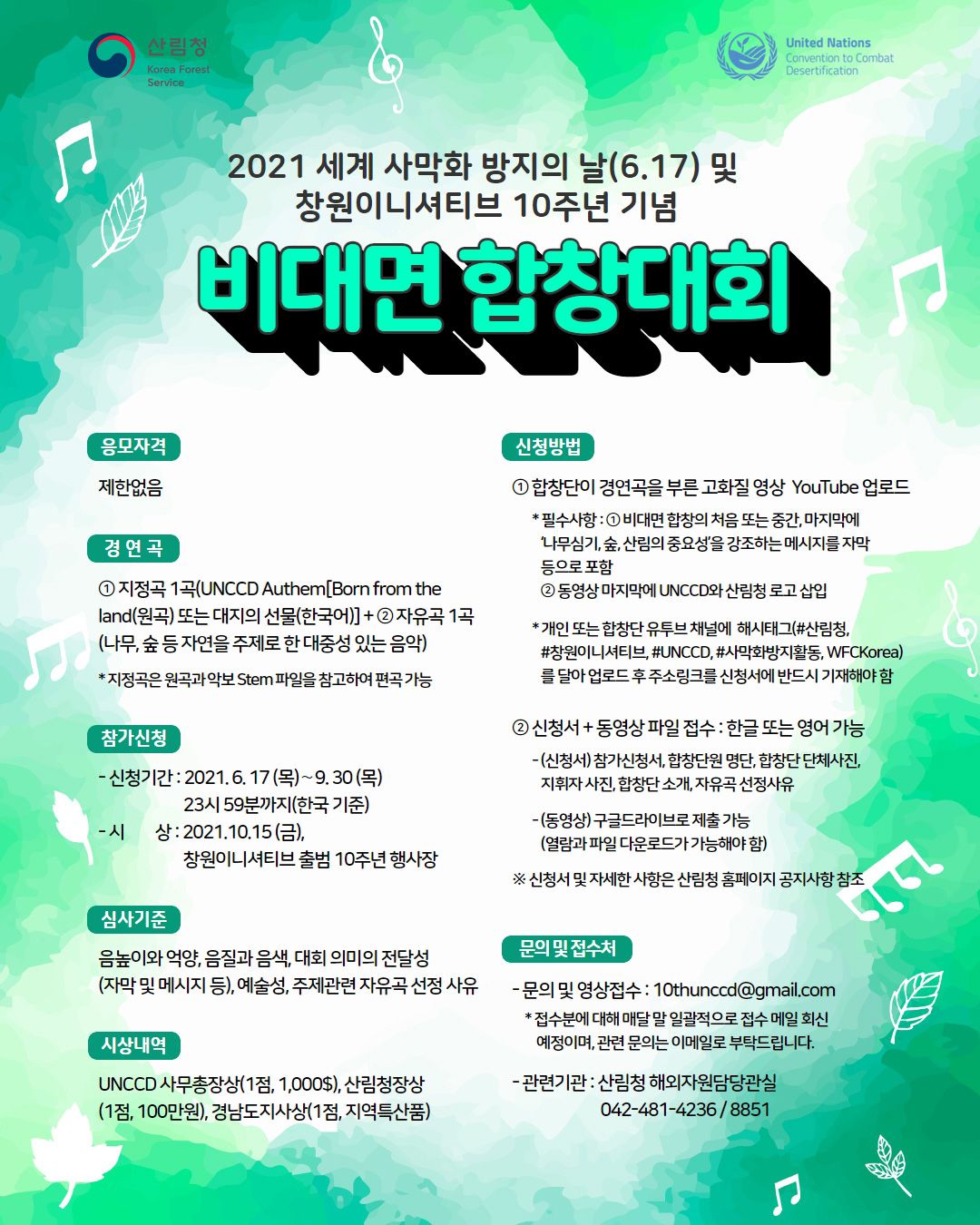 세계 사막화방지의 날(6.17) 및 창원이니셔티브 출범 10주년을 기념하여 대국민 대상으로 '비대면 합창대회'를 개최하고자하니 많은 관심과 참여 부탁드립니다.