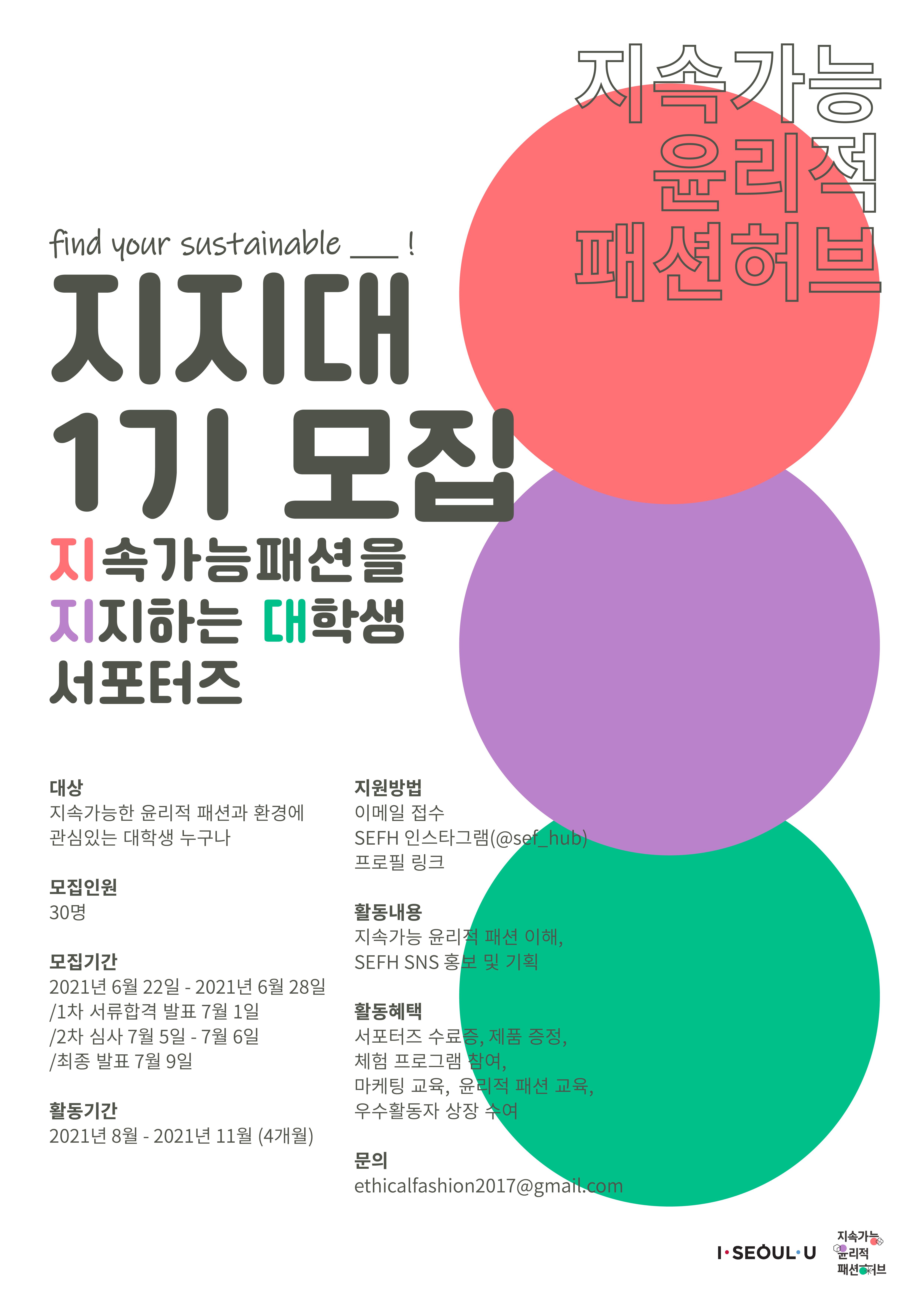 2021년 SEFH의 대학생 서포터즈 ‘지지대(지속가능패션을 지지하는 대학생 서포터즈)’ 1기를 모집합니다.