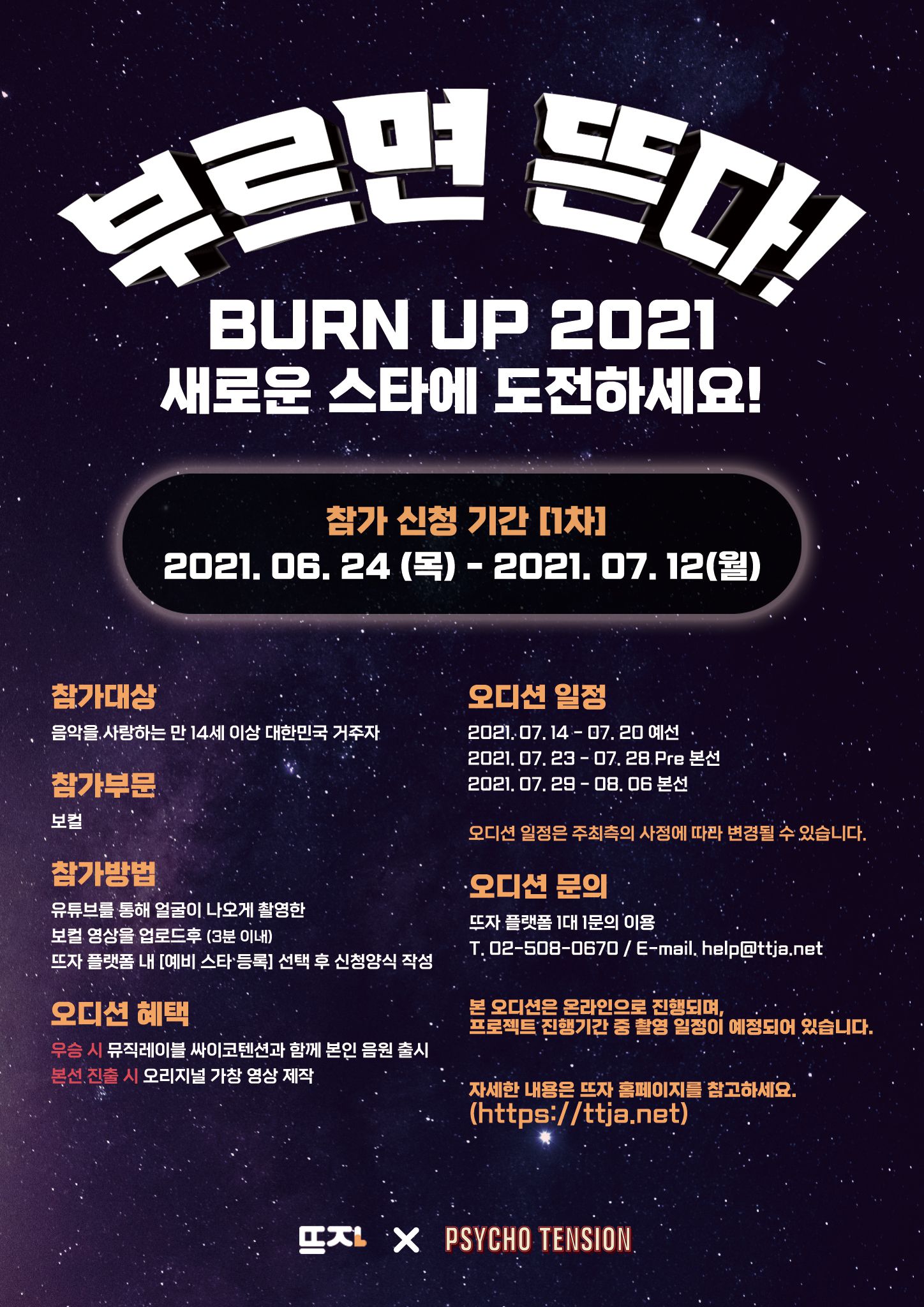부르면 뜬다! Burn Up 2021 온라인 오디션 1차 참가 모집
