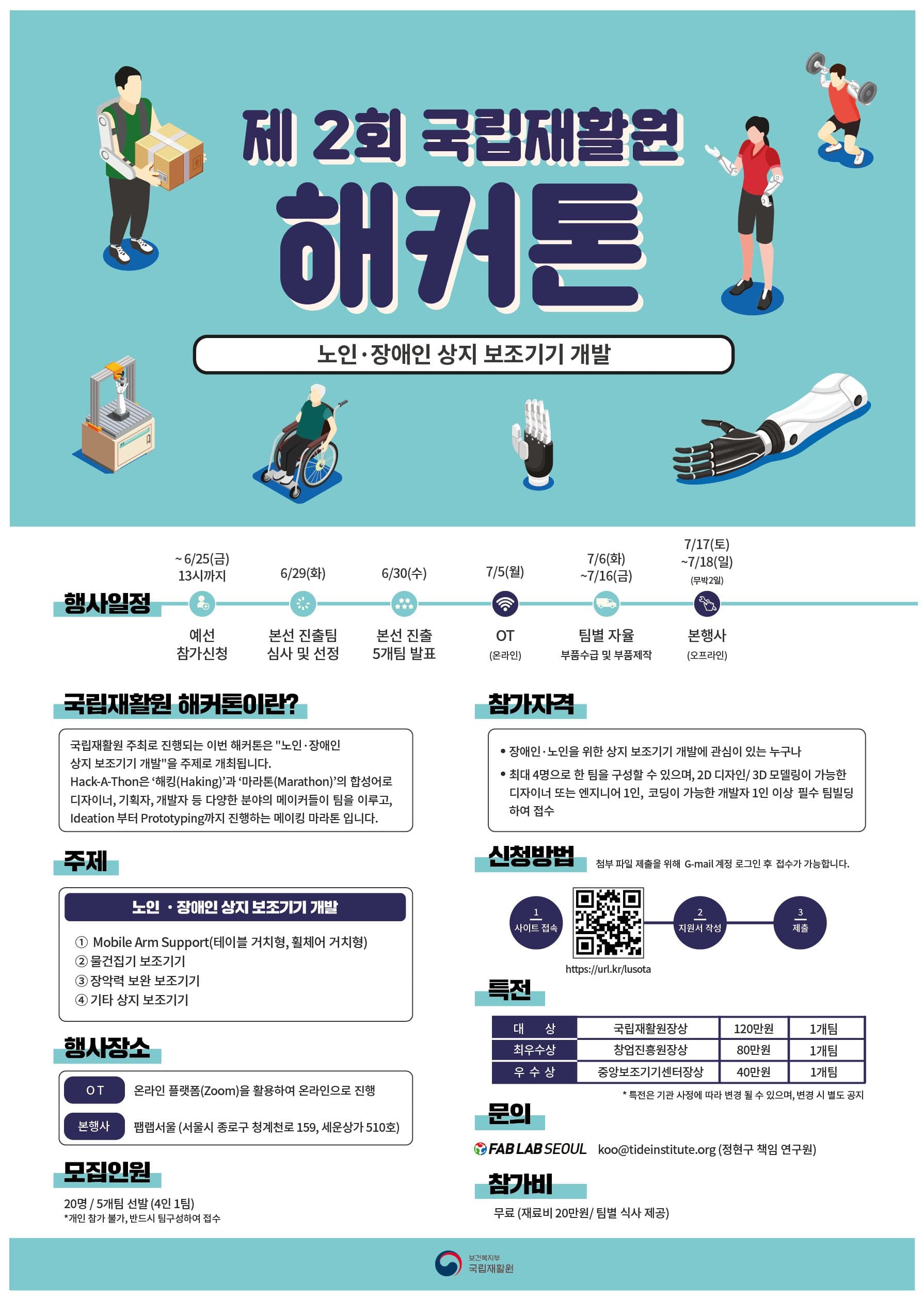 1. 대상 : 국립재활원장상(120만원) 1개팀