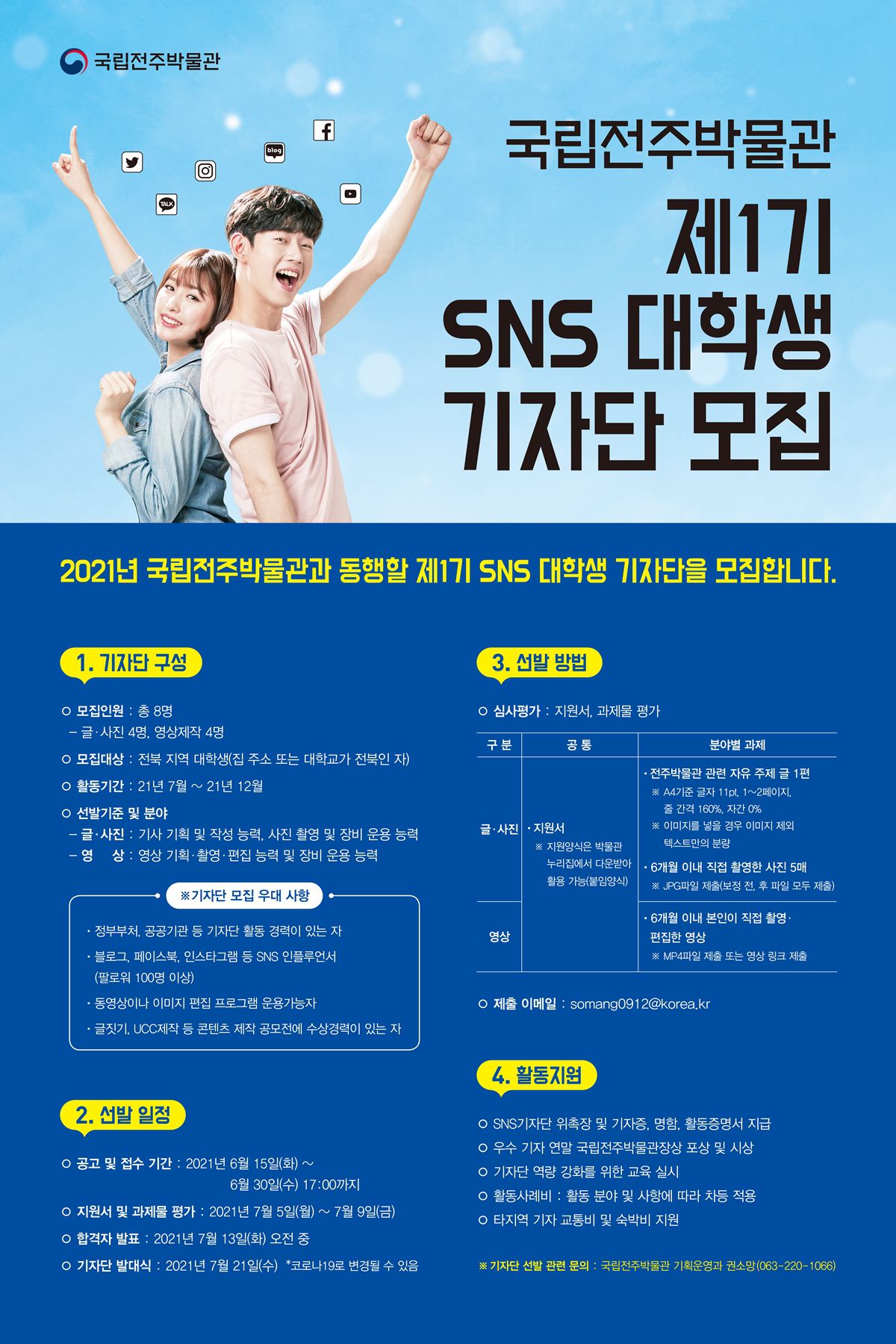 ※ 기자단 선발 관련 문의 : 국립전주박물관 기획운영과 권소망(063-220-1066)