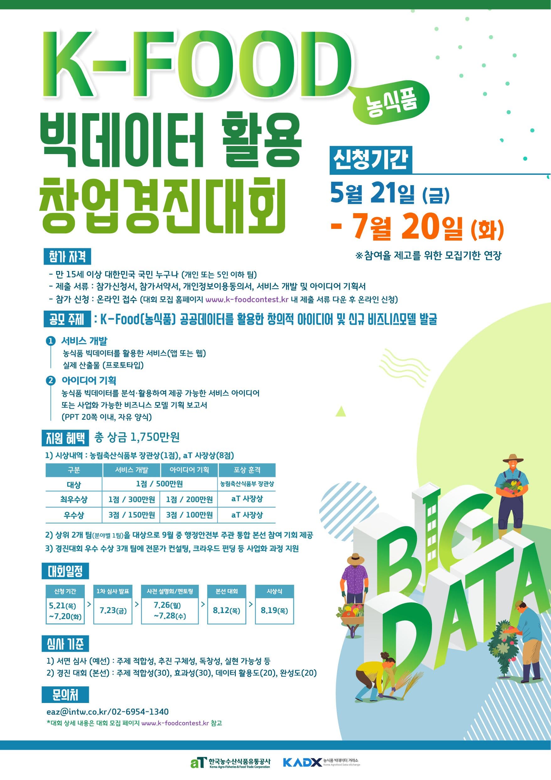 더 많은 분들에게 기회를 드리기 위해 'K-Food 빅데이터 활용 창업 경진대회' 모집기한이 연장되었습니다.