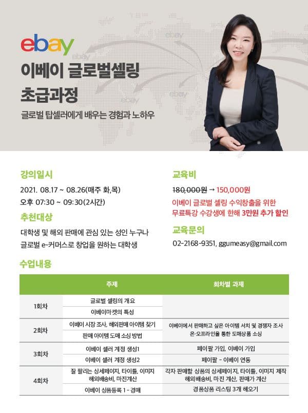 이베이 글로벌 셀링 수익창출을 위한 무료특강 수강생에 한해 3만원 추가 할인