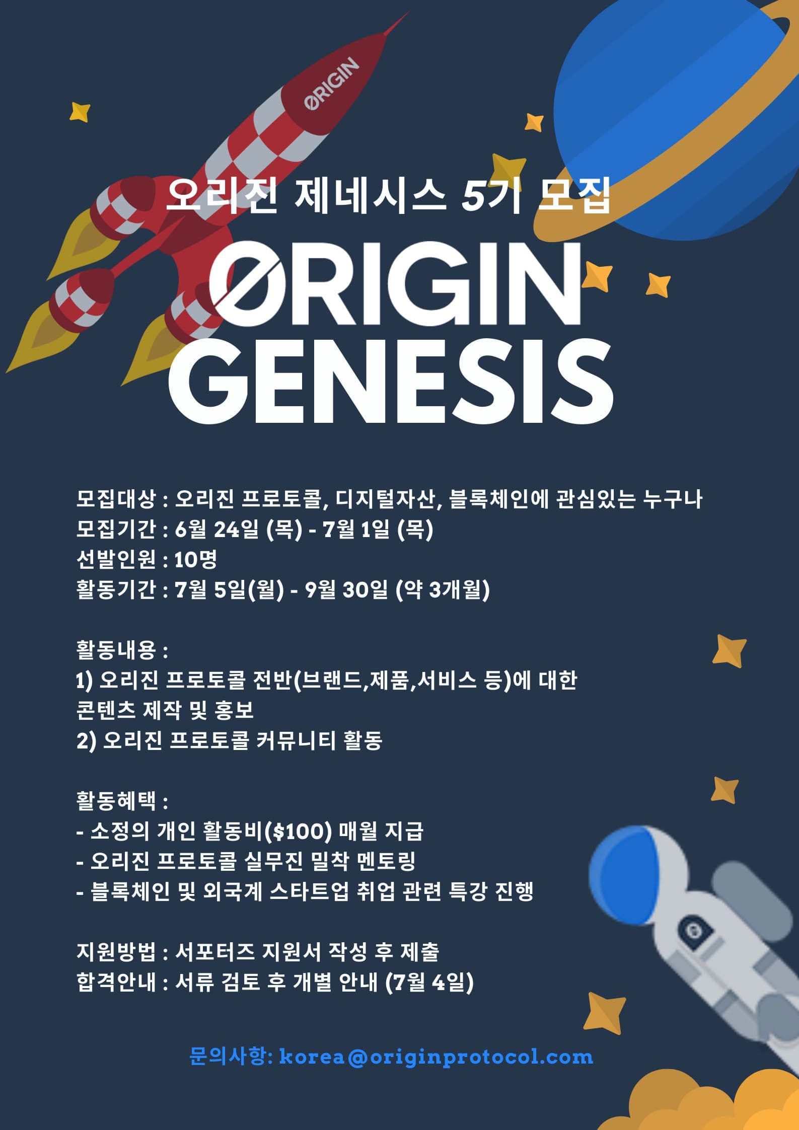 도전을 두려워 하지 않는 열정적인 “오리진 제네시스(Genesis)” 분들 우리 곧 만나요!