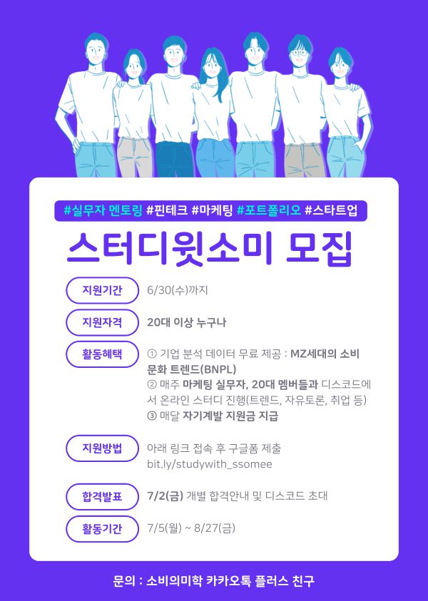 소미 마케터와 20대 멤버분들이 함께 만드는 온라인 스터디 모임이에요!
