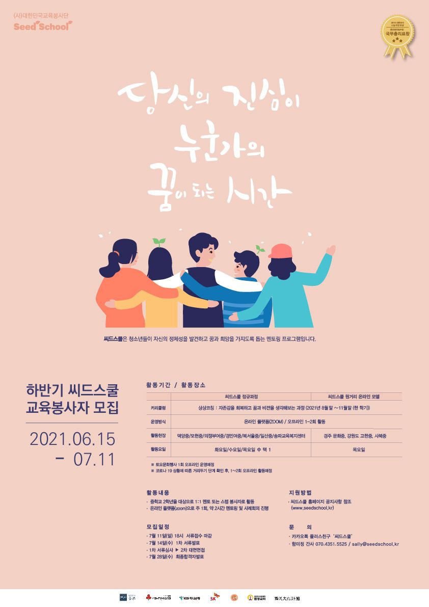 2021년 하반기 청소년 멘토링 씨드스쿨 13기 교육봉사자 모집
