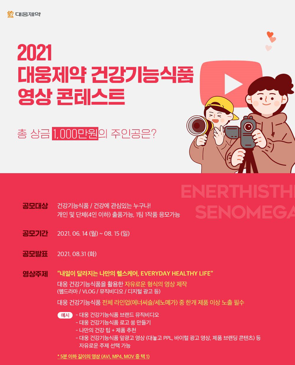 *필수 해시태그: #대웅영상공모전 #대웅제약건강기능식품 #(제품명) #대웅제약 #건강기능식품 #(제품관련성분)