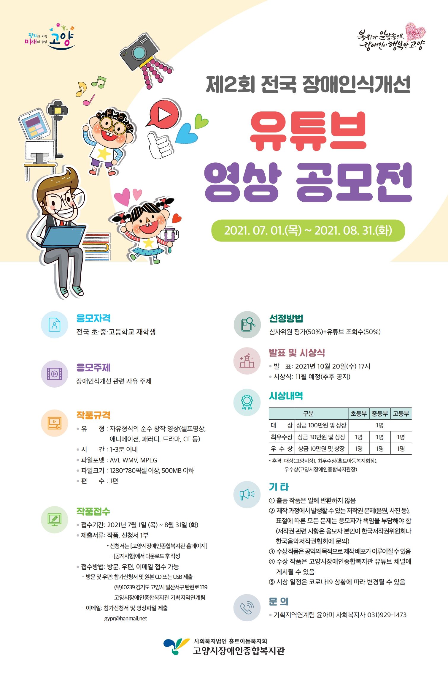 ④ 수상 작품은 고양시장애인종합복지관 유튜브 채널에 게시될 수 있음