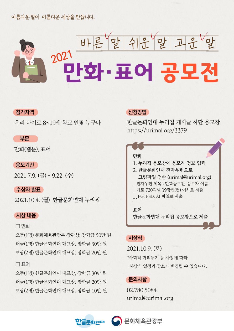 <2021 바른 말 쉬운 말 고운 말 만화·표어 공모전>
