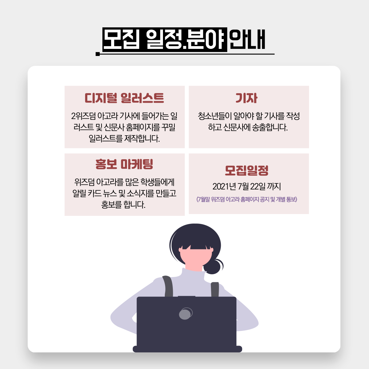 3. 홍보 마케팅 : 위즈덤 아고라를 많은 학생들에게 알릴 카드 뉴스 및 소식지를 만들고 홍보를 합니다.