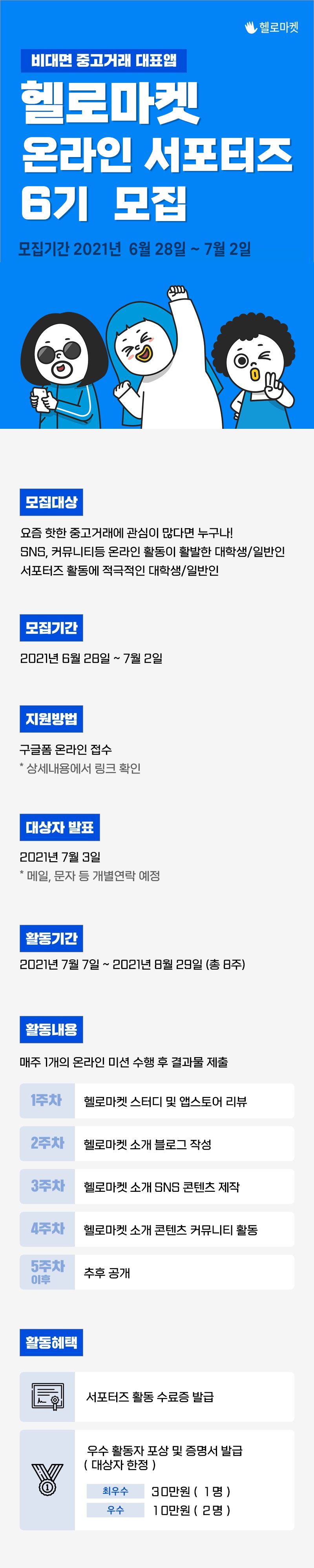비대면 중고거래 대표앱 「헬로마켓」과 함께 할 온라인 서포터즈를 모집합니다.