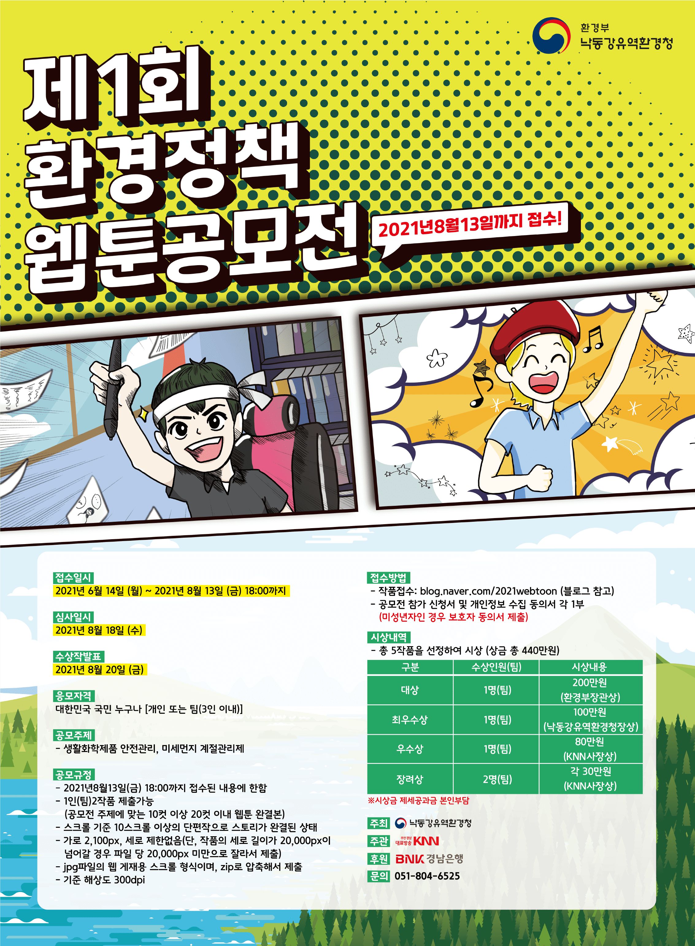 - 1인 2작품 제출 가능 (공모전 주제에 맞는 10컷이상 20컷이내 웹툰 완결본)