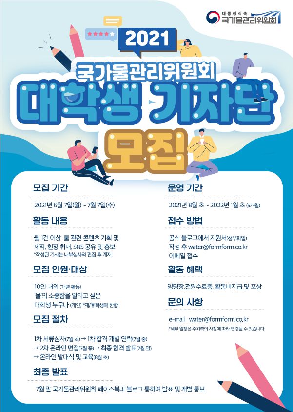 국가물관리위원회에서 대학생 기자단을 모집합니다!