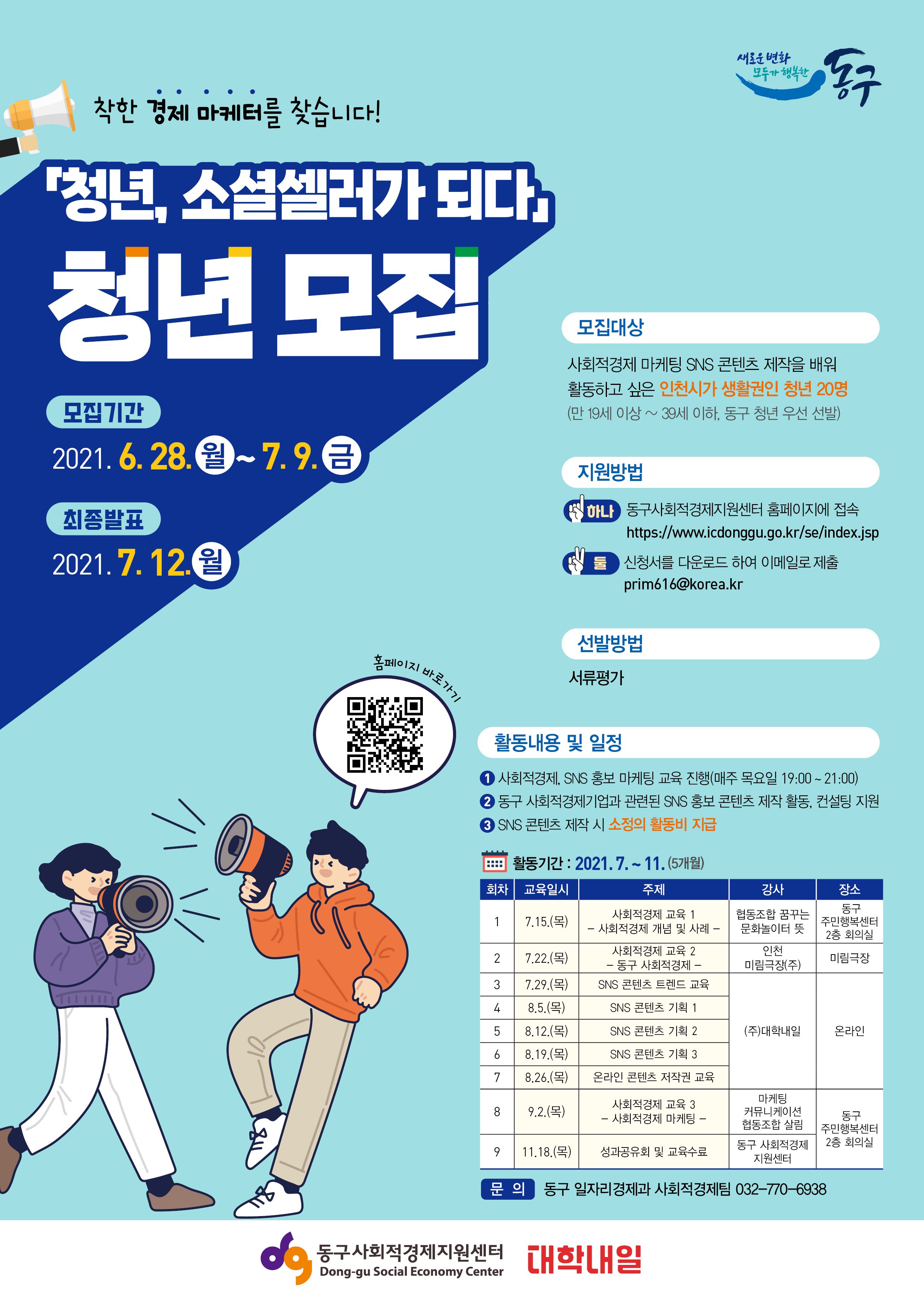 ○ 문 의 : 동구 일자리경제과 사회적경제팀(032-770-6938)