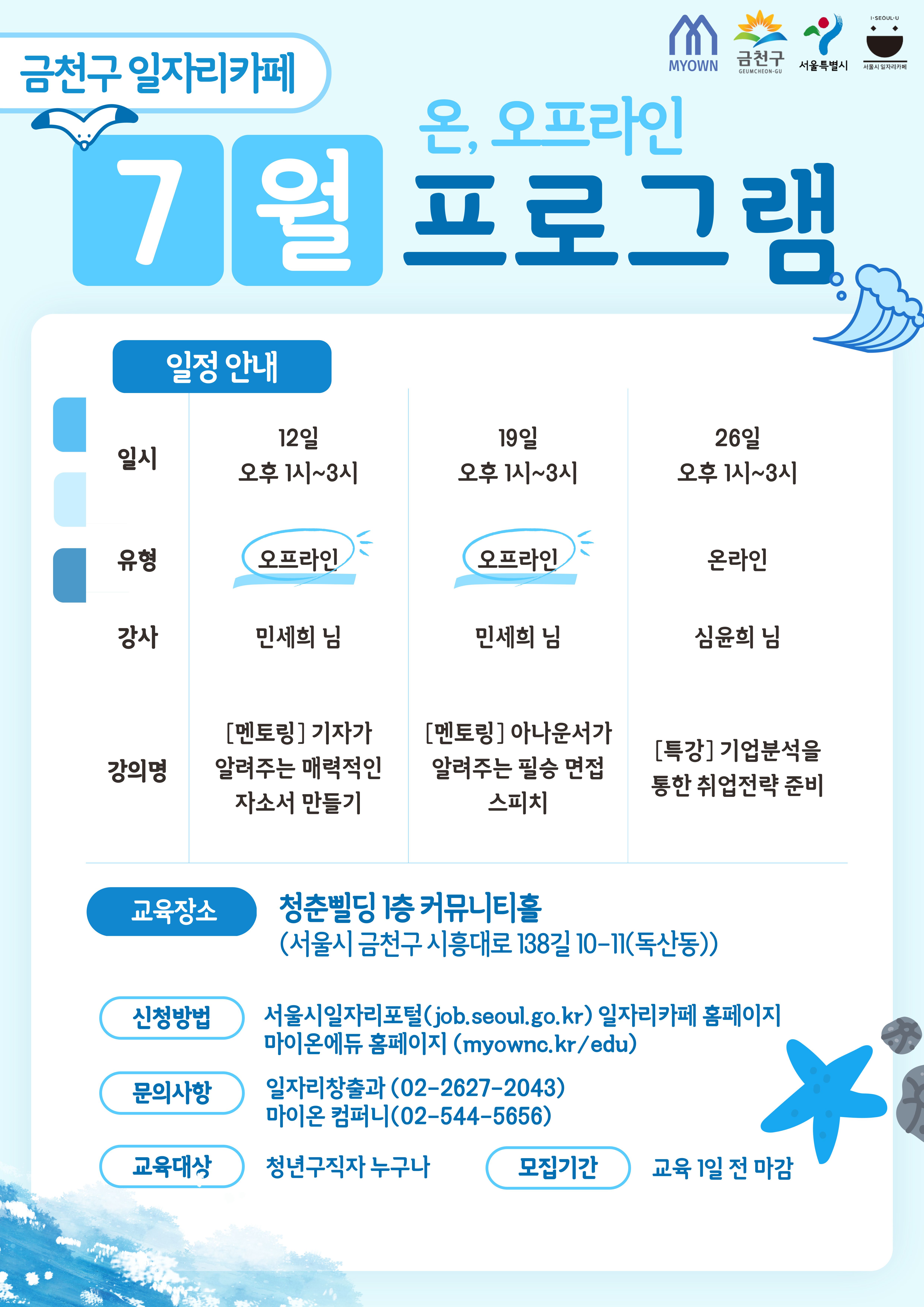 [금천구 일자리카페X마이온에듀] 7월 온오프라인 취업 멘토링 및 특강 수강생 모집