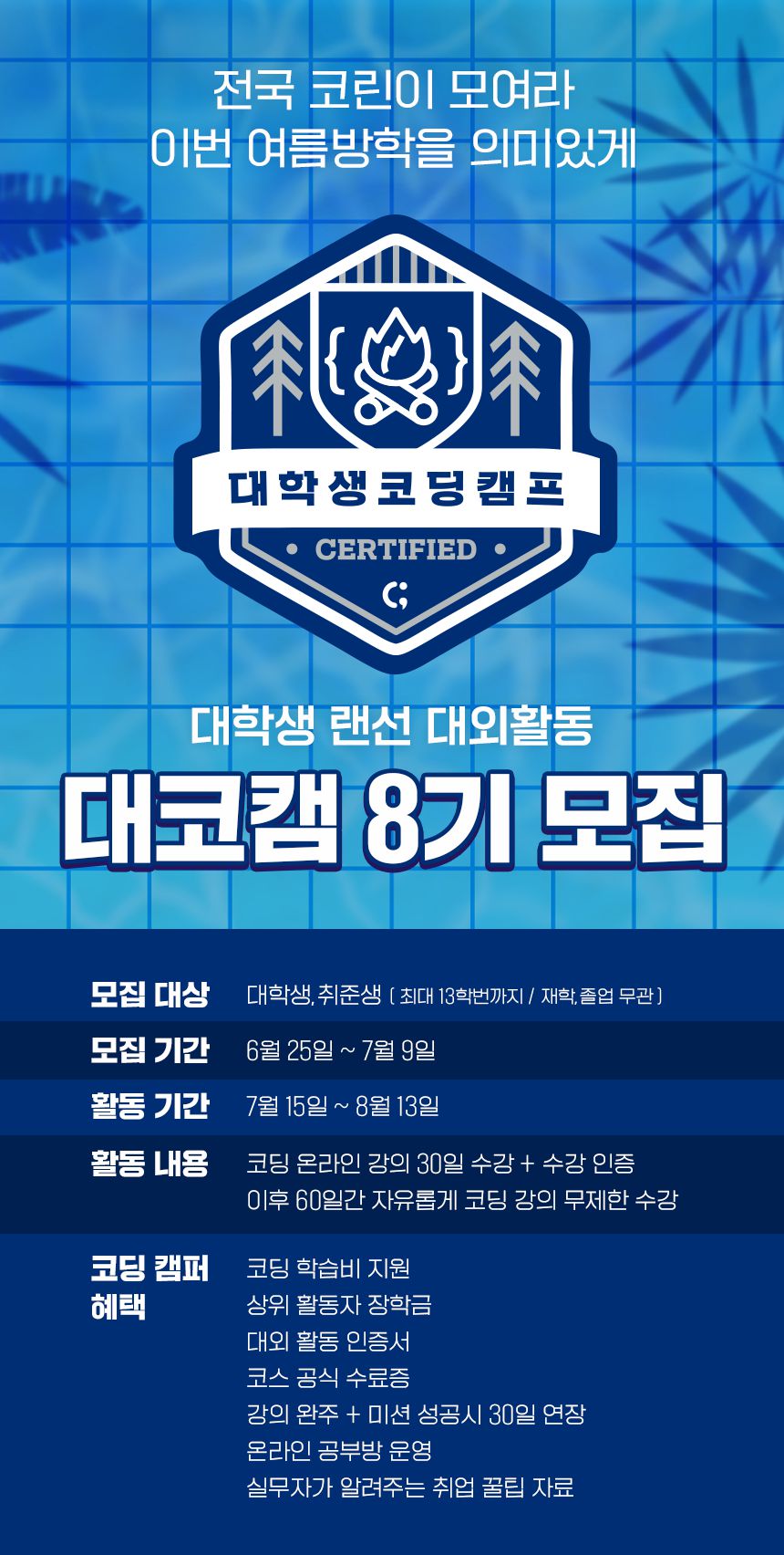 검증한 '대학생 코딩캠프 8기' 가 준비되어 있어요.