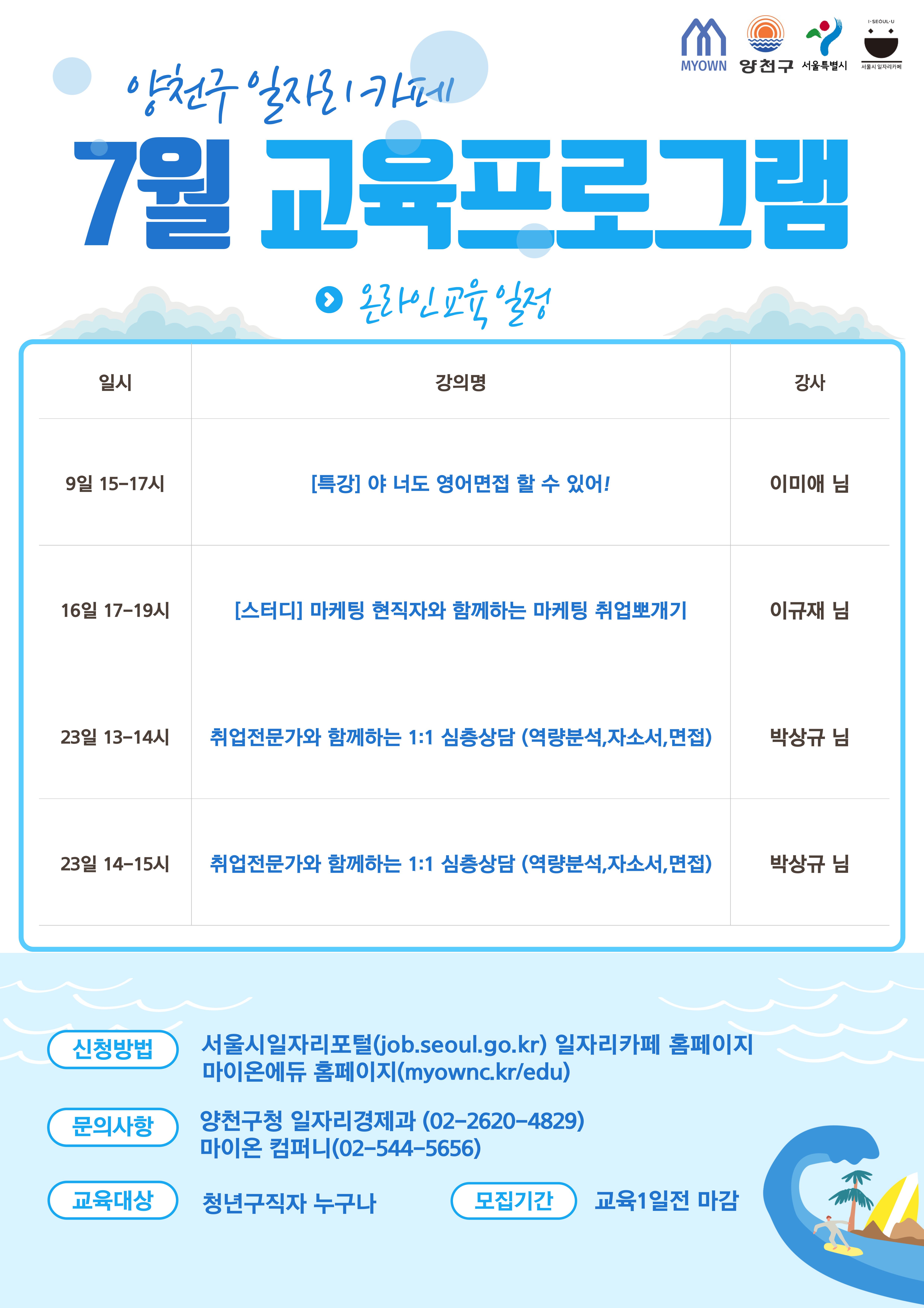 👉 문의사항: 1) 양천구청 일자리경제과 02-2620-4829 / 2) 마이온 에듀 02-544-5656
