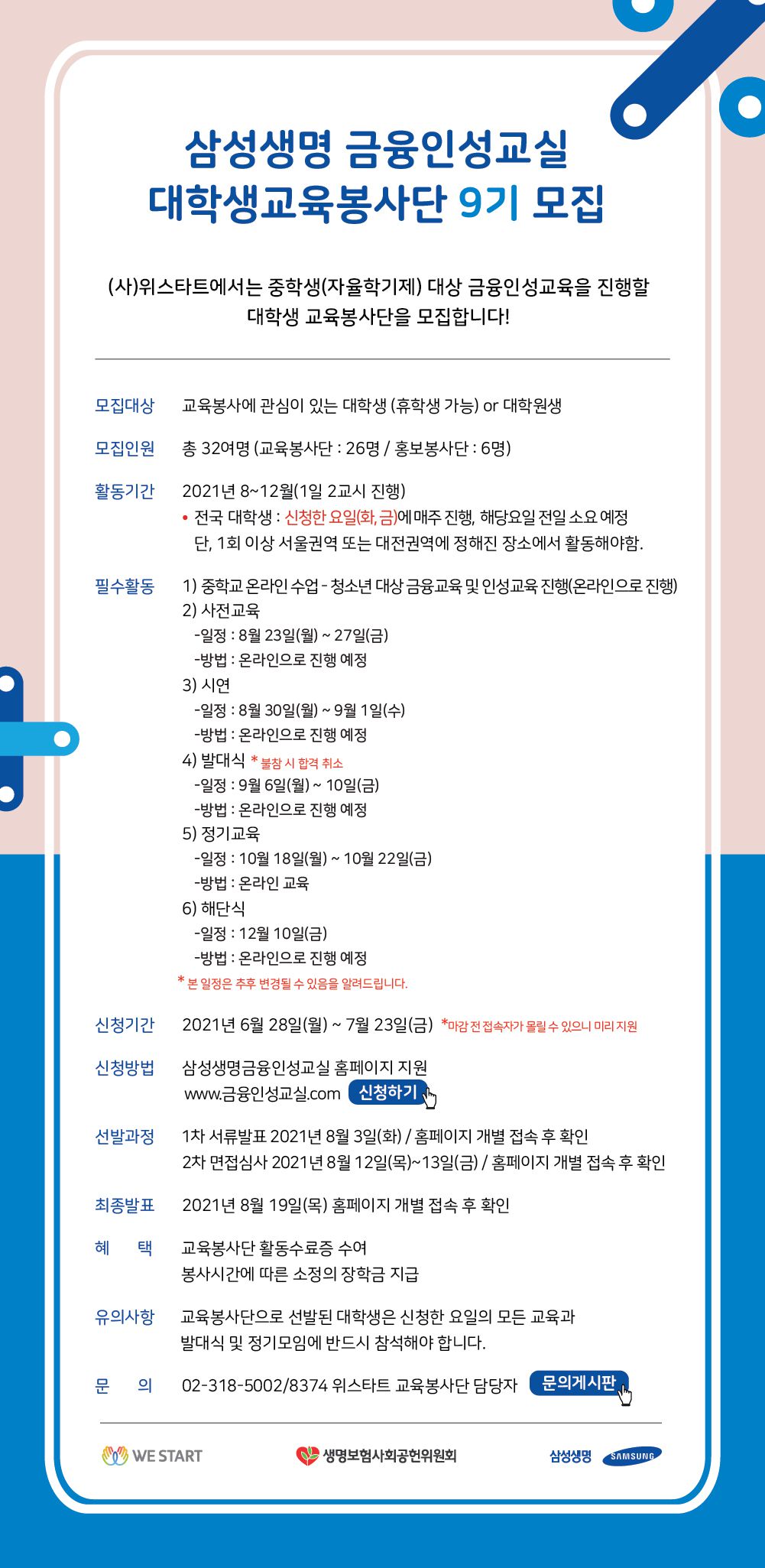 삼성생명 금융인성교실 교육봉사단 9기 모집