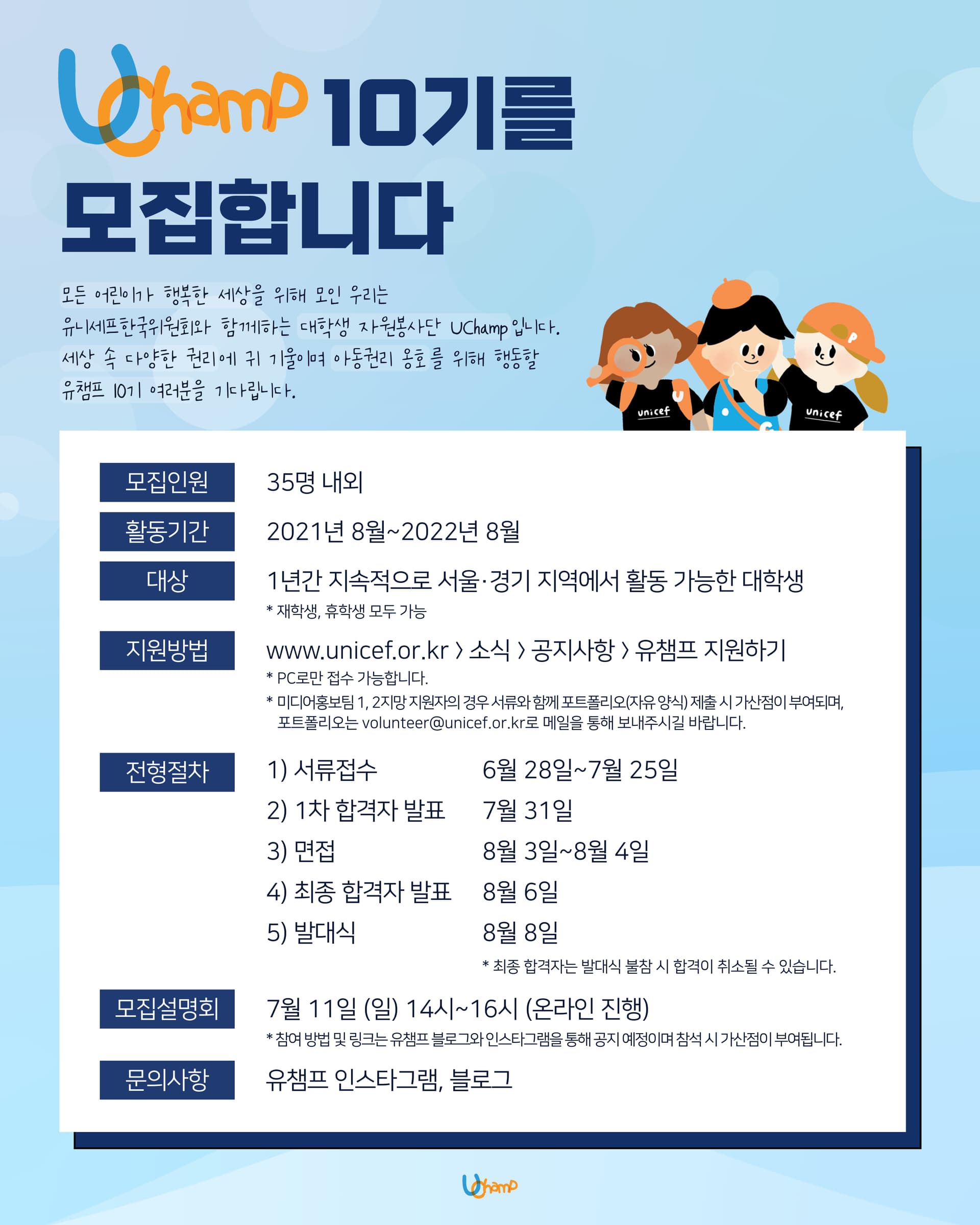[유니세프한국위원회 대학생 자원봉사단 UNICEF Champions 10 기 모집]