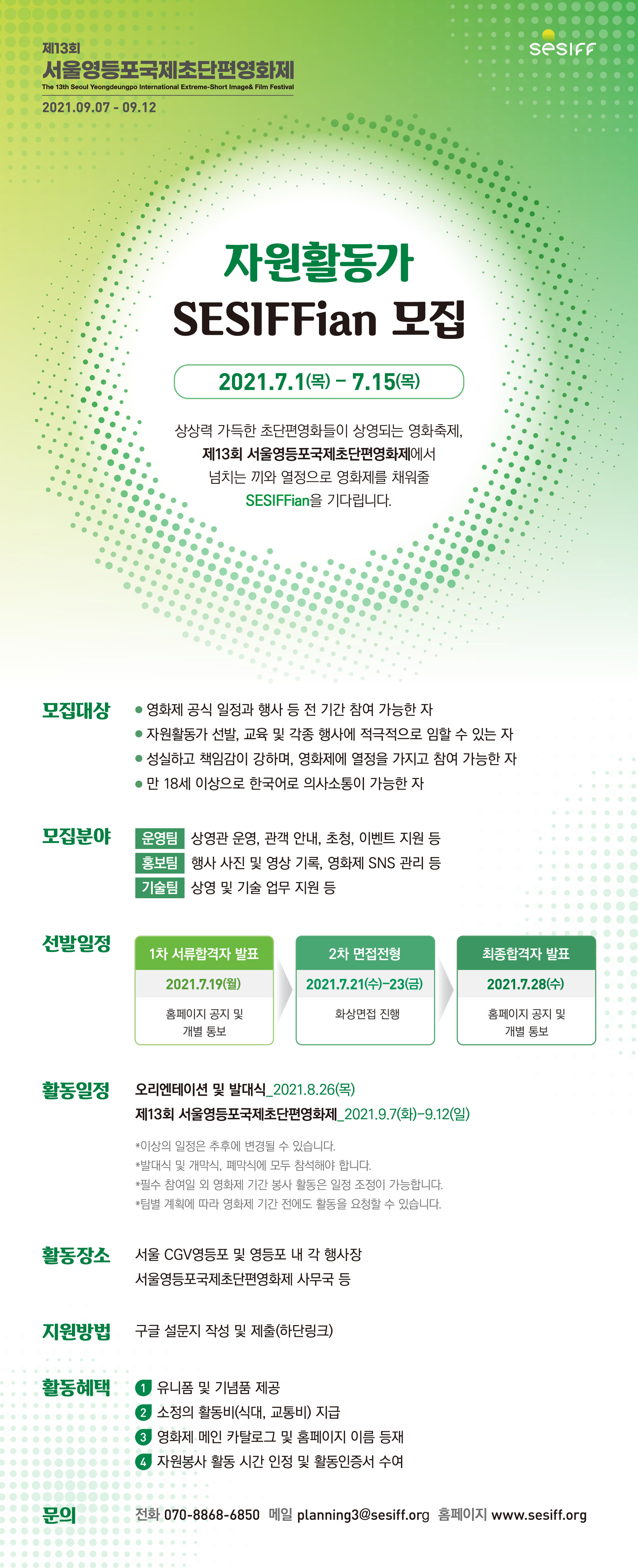 '제13회 서울영등포국제초단편영화제'에서 자원활동가 'SESIFFian'을 모집합니다!