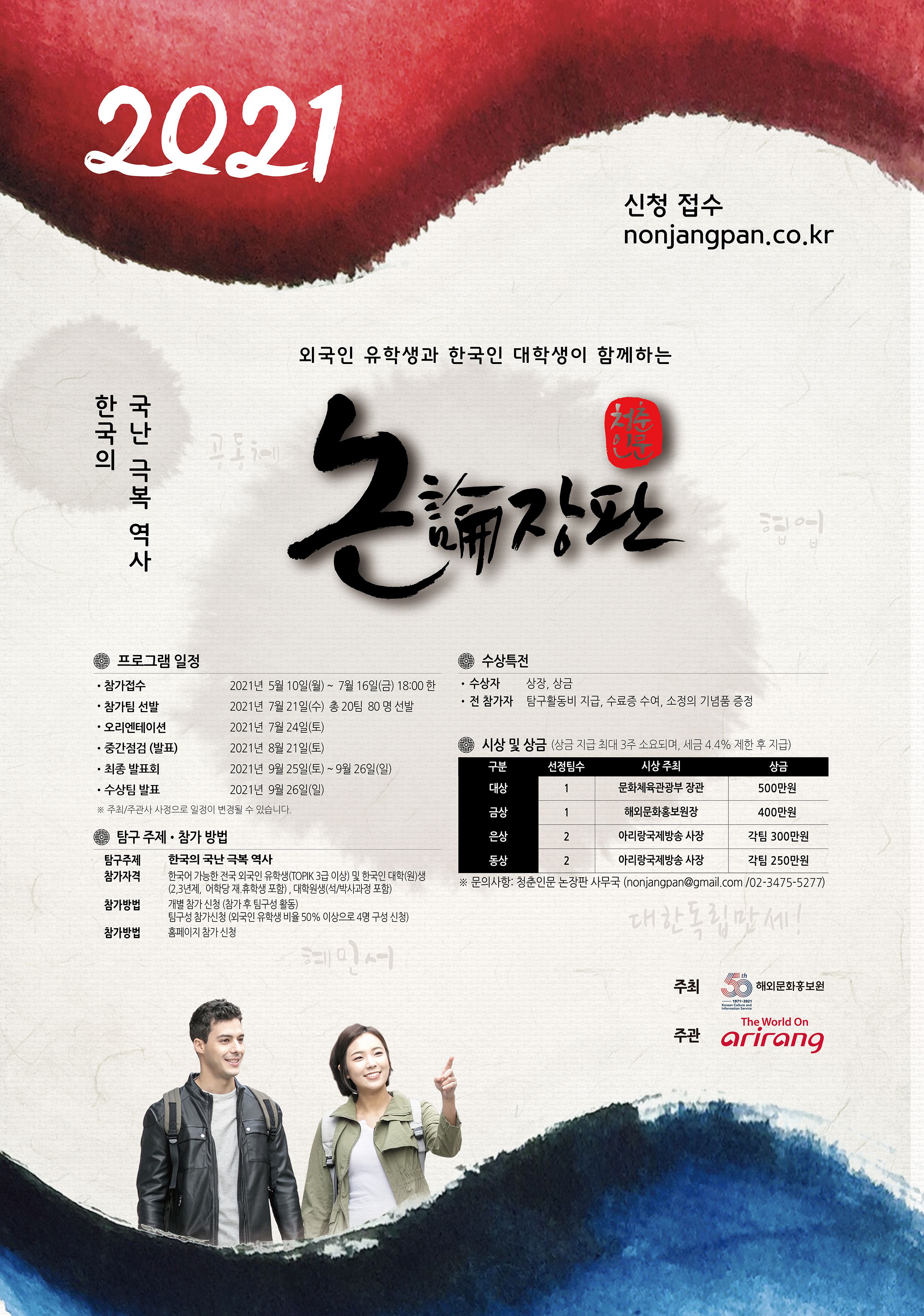 [문체부X아리랑국제방송] 주한유학생과 함께하는 한국 인문학 탐구 2021 논장판 모집(~7.16)