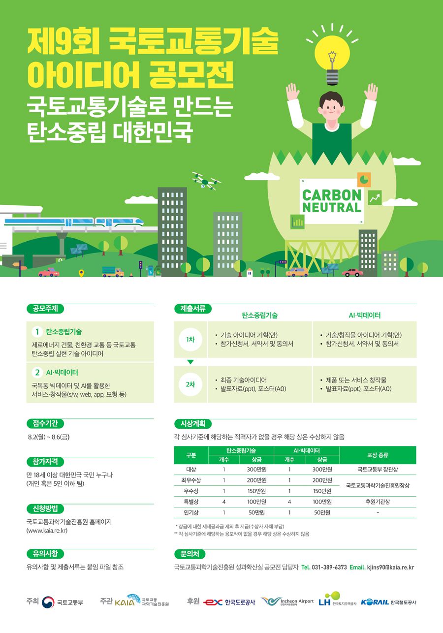 - 우수상(1) : 150만 원 및 국토교통과학기술 진흥원장상