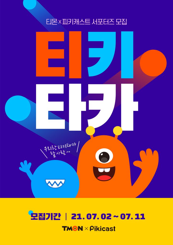티몬과 피키가 만났다?!! 티몬X피키의 새로운 출발을 함께 할 티몬X피키 "티키타카" 1기 서포터즈를 모집합니다.