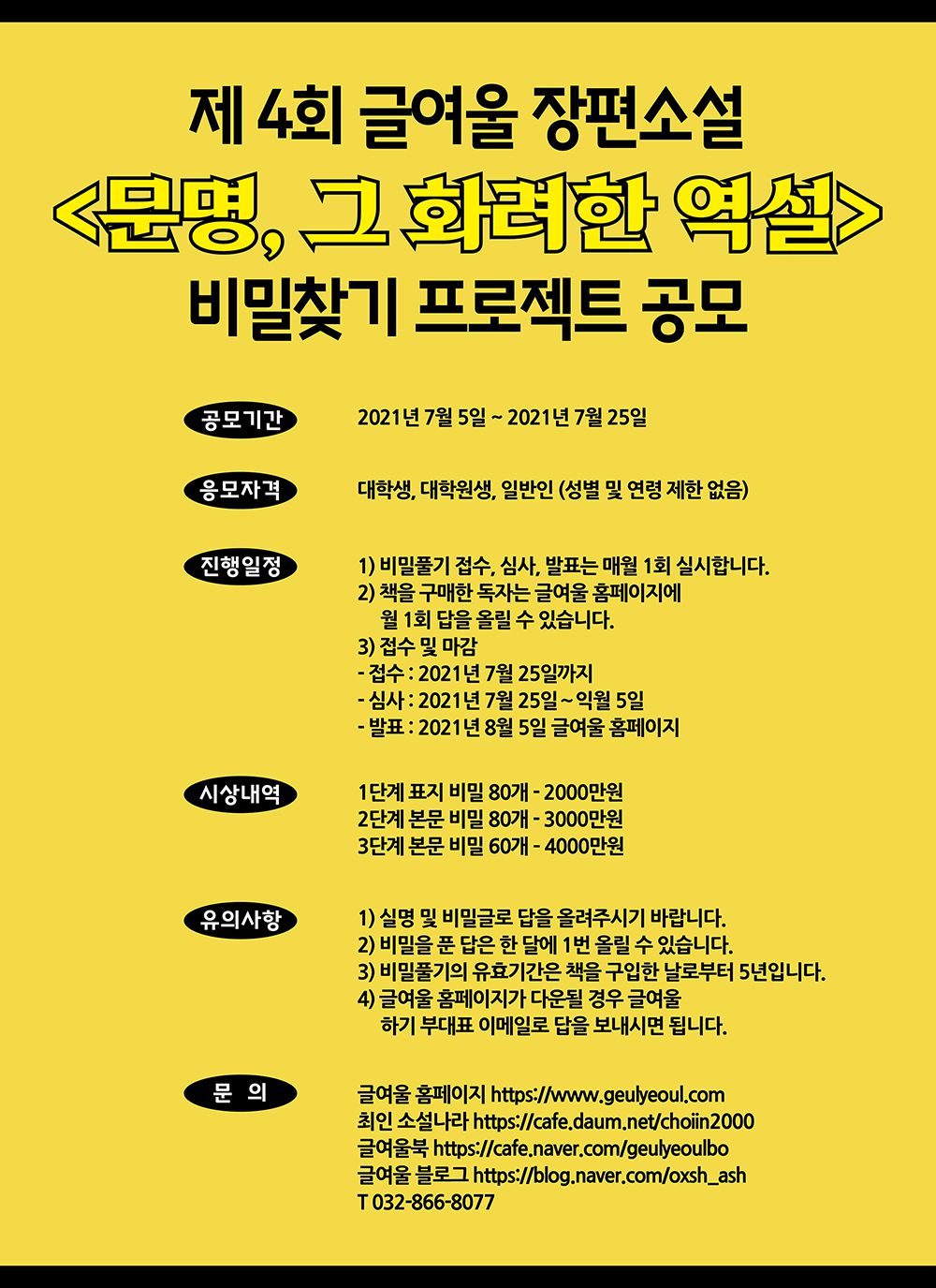 제 4회 글여울 장편소설 <문명 그 화려한 역설> 비밀찾기 프로젝트 공모