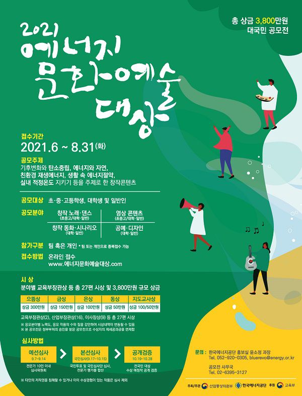 - 예술과 디지털 기술 등을 자유롭게 접목하되, 에너지를 주제로 한 영상 스토리텔링 콘텐츠 (브이로그, 애니메이션, 광고, 다큐 등 장르 자유)