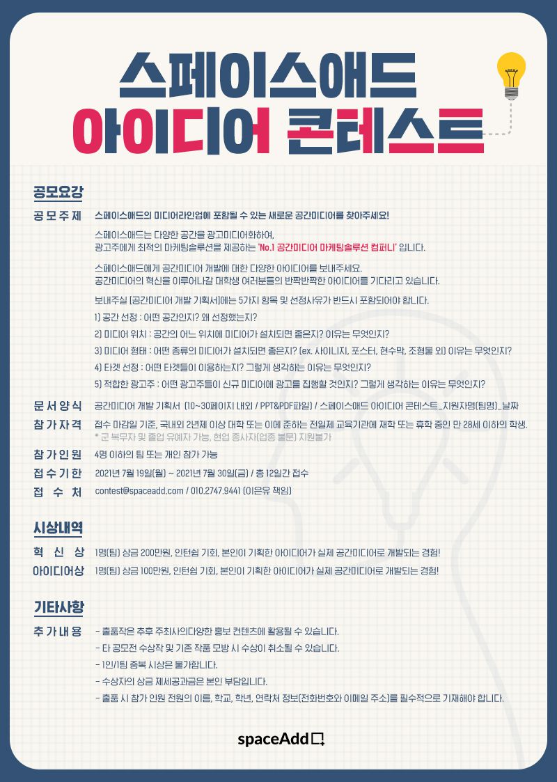 contest@spaceadd.com / 010.2747.9441 (이은유 책임)