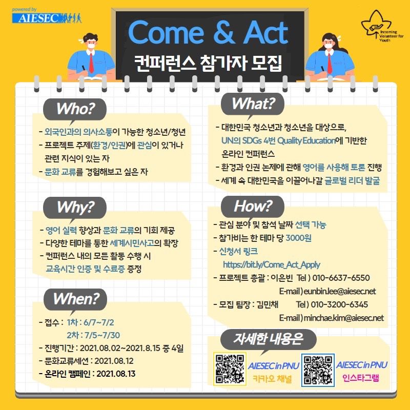 국제리더십학생협회 부산대학교지부(AIESEC in PNU)에서 Come & Act 컨퍼런스 참가자를 모집합니다!