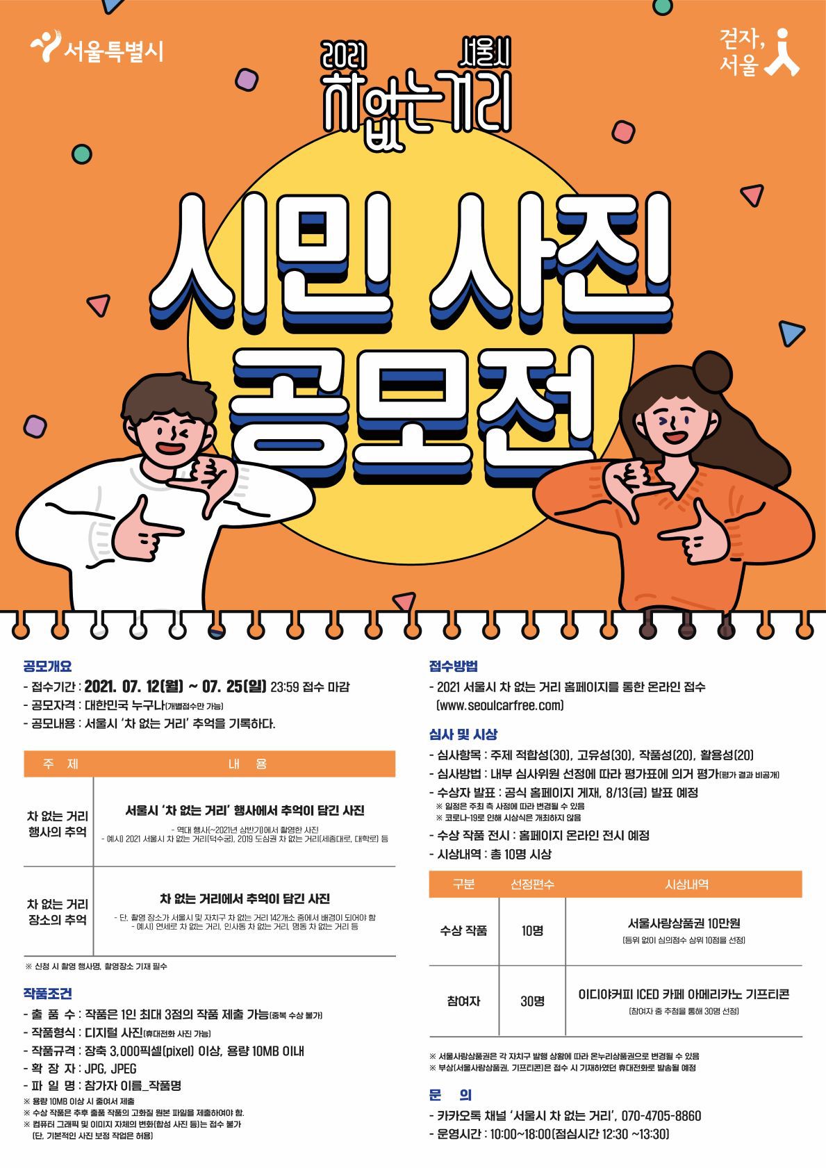 차 없는 거리에서 추억이 담긴 사진 - 단, 촬영 장소가 서울시 및 자치구 차 없는 거리 142개소 중에서 배경이 되어야 함 - 예시) 연세로 차 없는 거리, 인사동 차 없는 거리, 명동 차 없는 거리 등 |